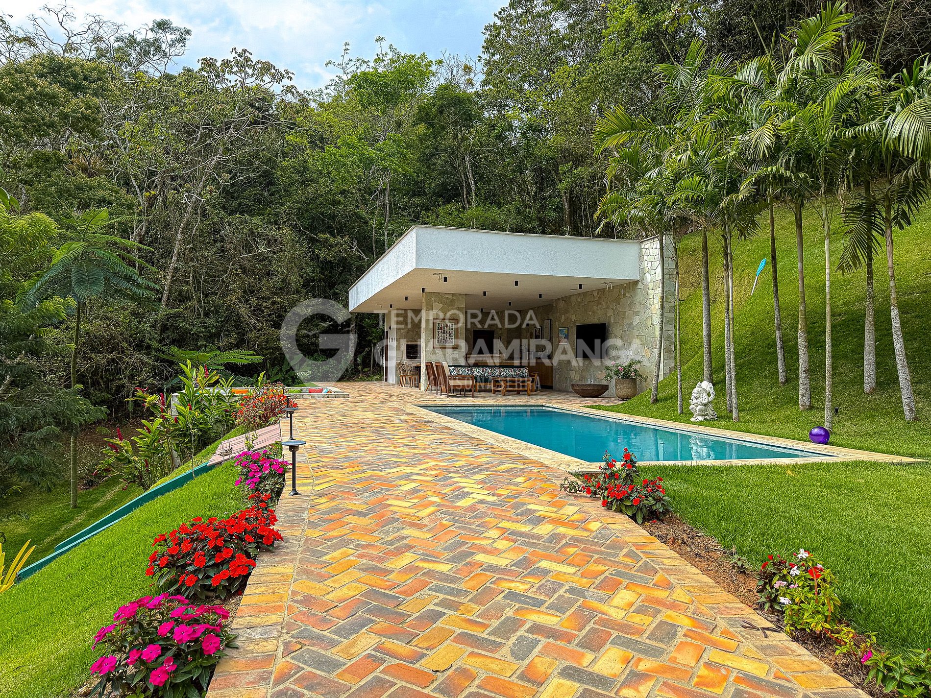 • House with 4 suites, TV room, dining room, fully equipped kitchen, and garden.