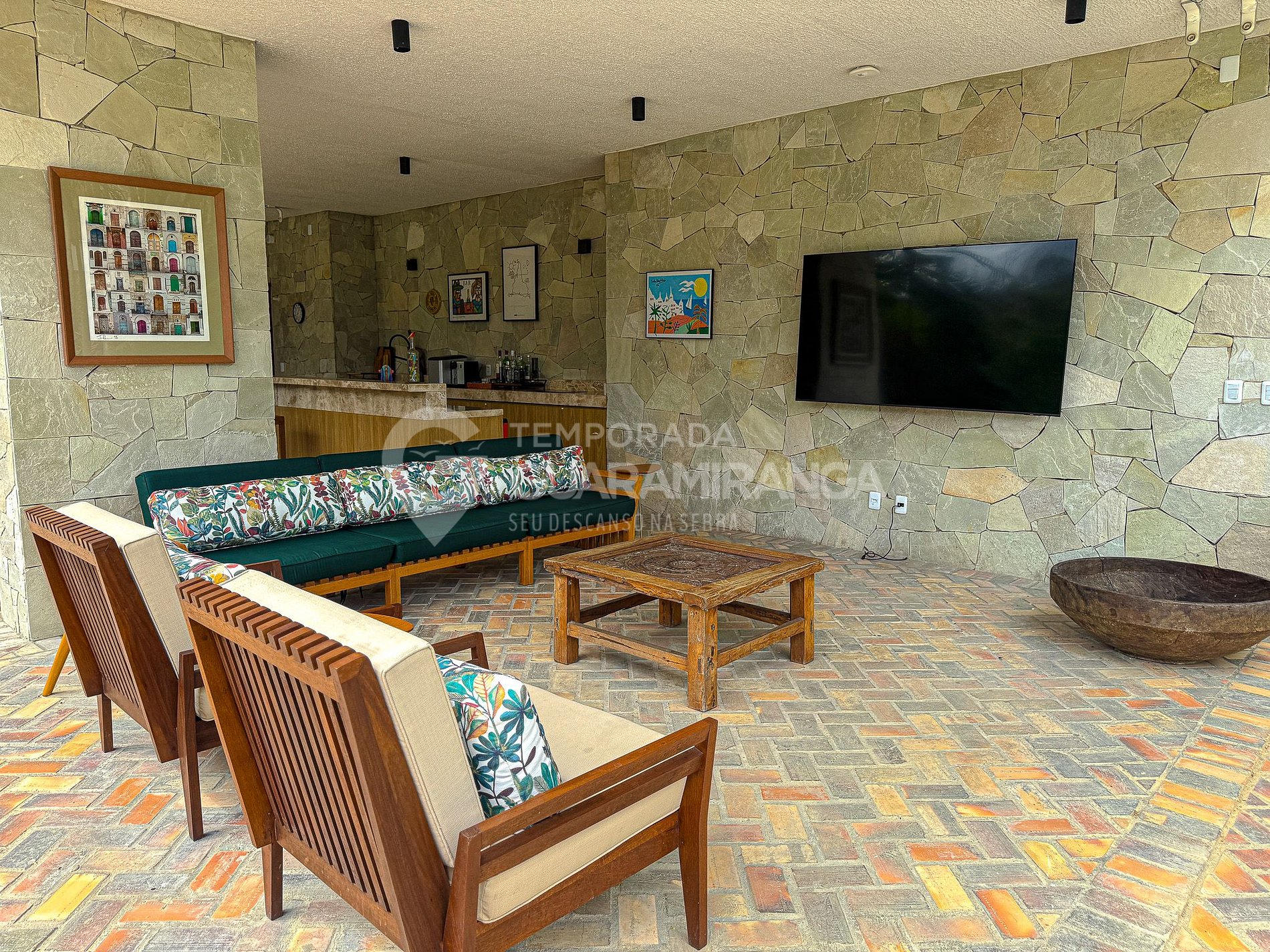 Set amid the lush greenery of the mountains, Casa Firdaus offers comfort, charm, and close contact with nature. It features 4 cozy suites, tastefully decorated interiors, a TV room, dining room, and a fully equipped kitchen. The outdoor area delights with a garden, heated pool or jacuzzi overlooking the lake, a deck with barbecue, pizza oven, and fire pit. Just 5 km from the center of Guaramiranga, it is perfect for relaxing and enjoying special family moments.