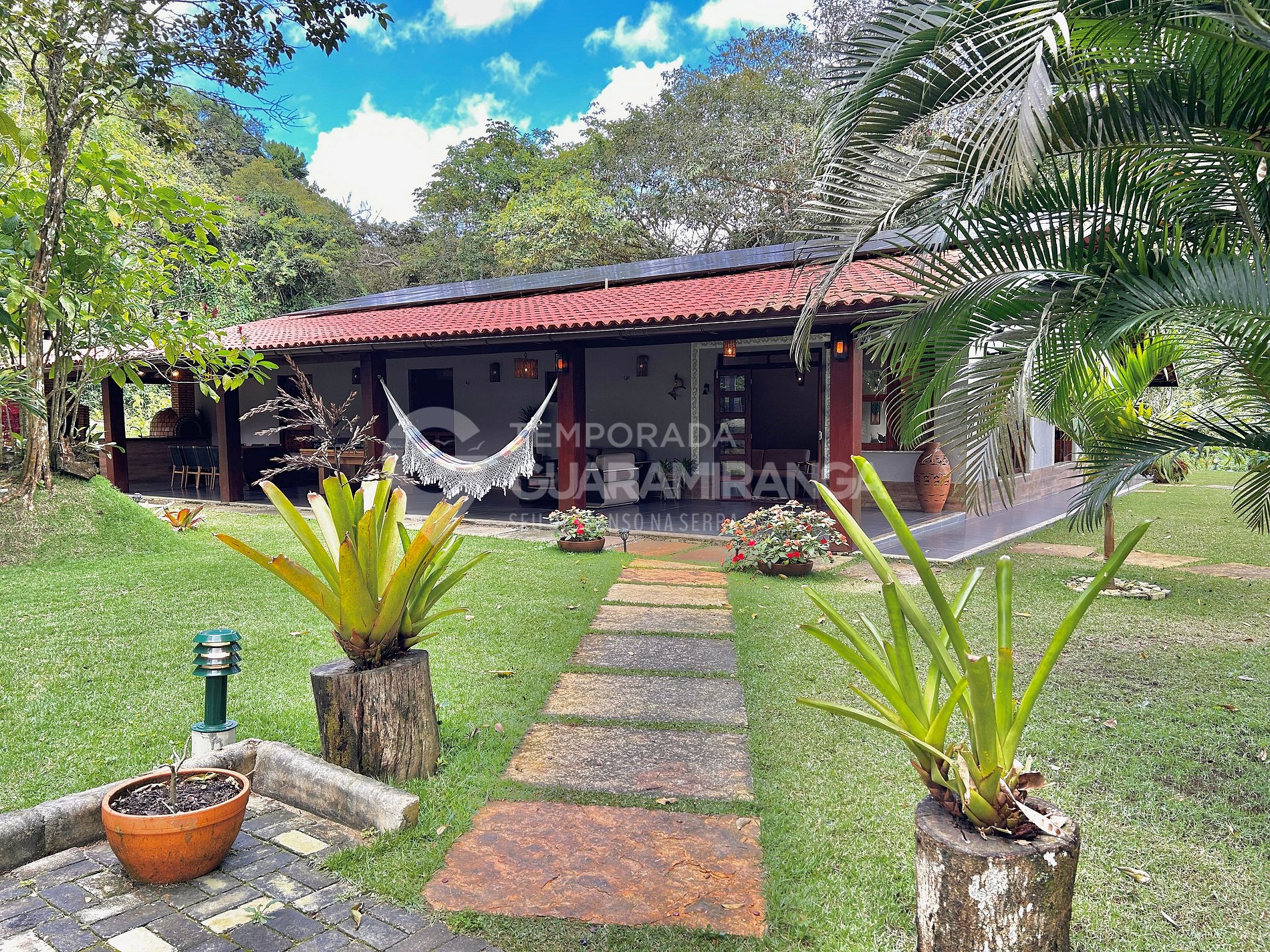 A cozy retreat in the heart of the mountains, Paço das Epífitas is a spacious, charming house, ideal for those seeking special moments surrounded by greenery, with comfort and leisure for the whole family. Located about 4 km from downtown Guaramiranga, the house offers 6 fully equipped air-conditioned suites, accommodates up to 20 guests, and features large gardens, a playhouse for children, and a small soccer field, ensuring fun and relaxation in a nature-filled setting.