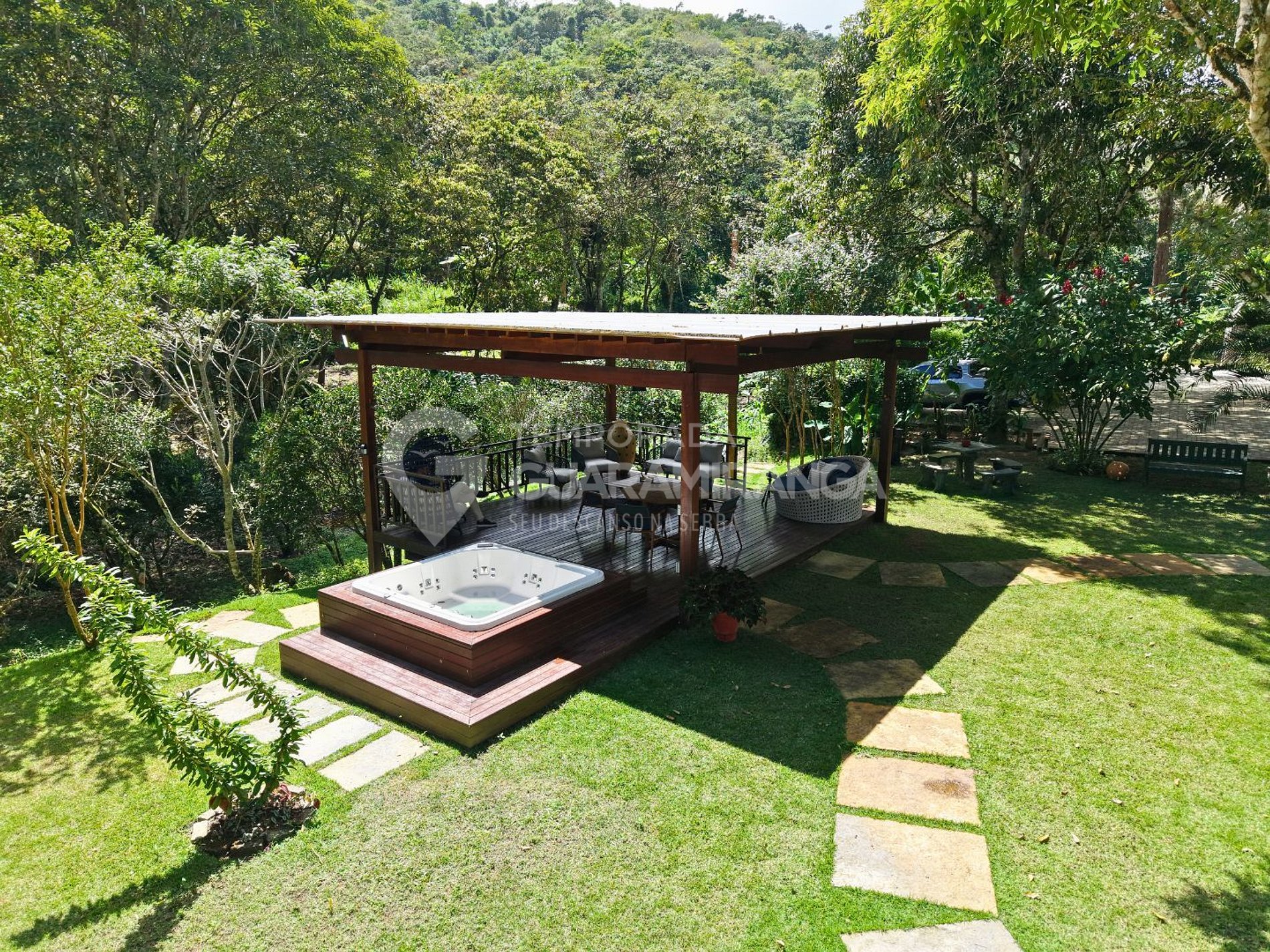 • Large gardens with lawns, surrounded by the mountain greenery.
