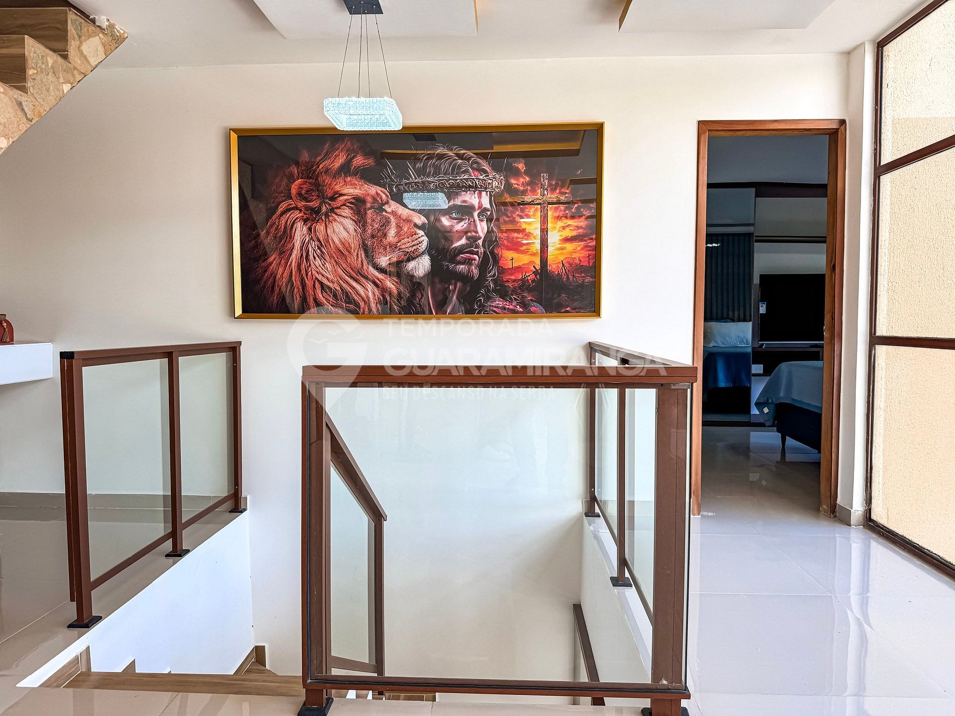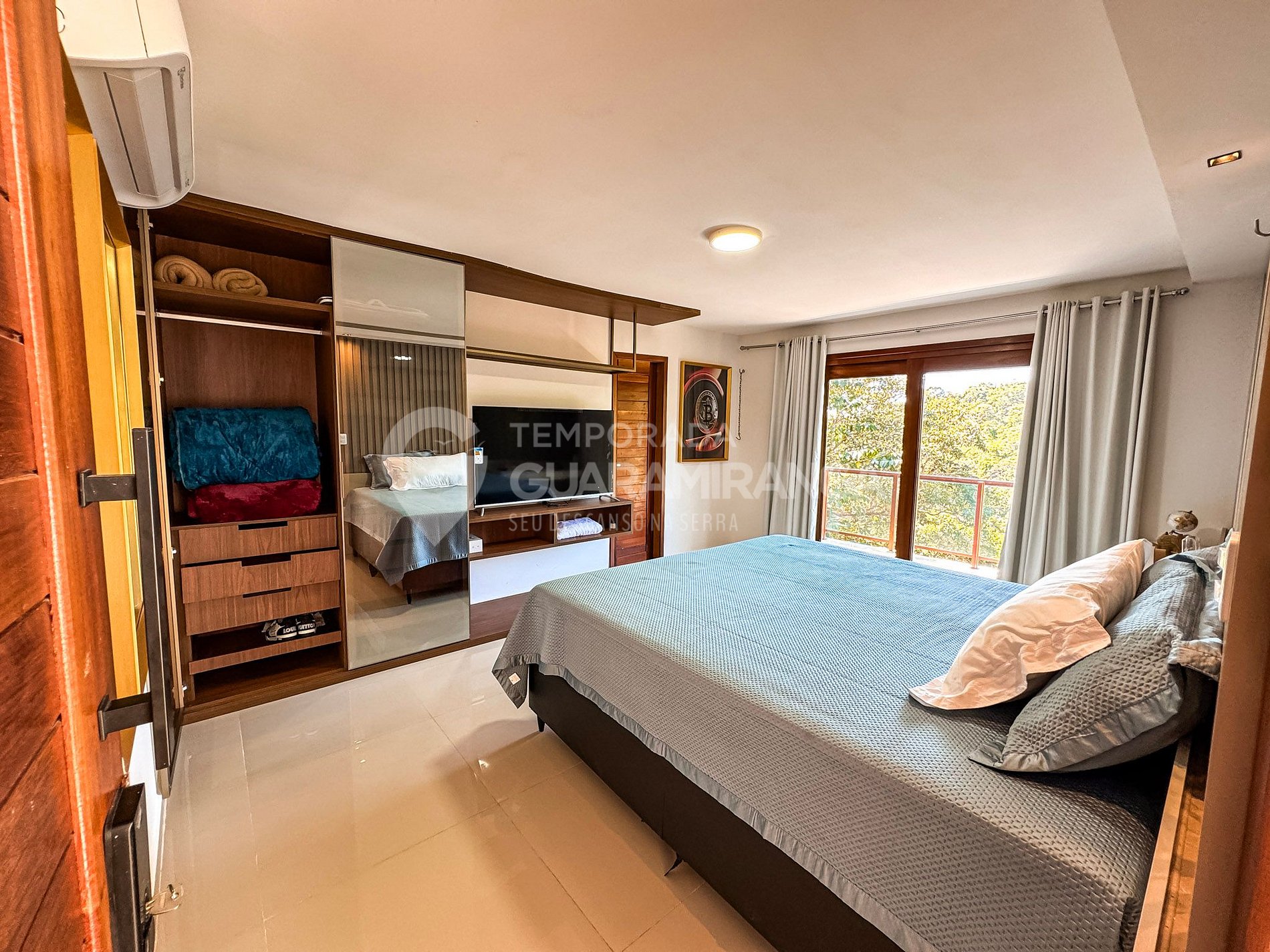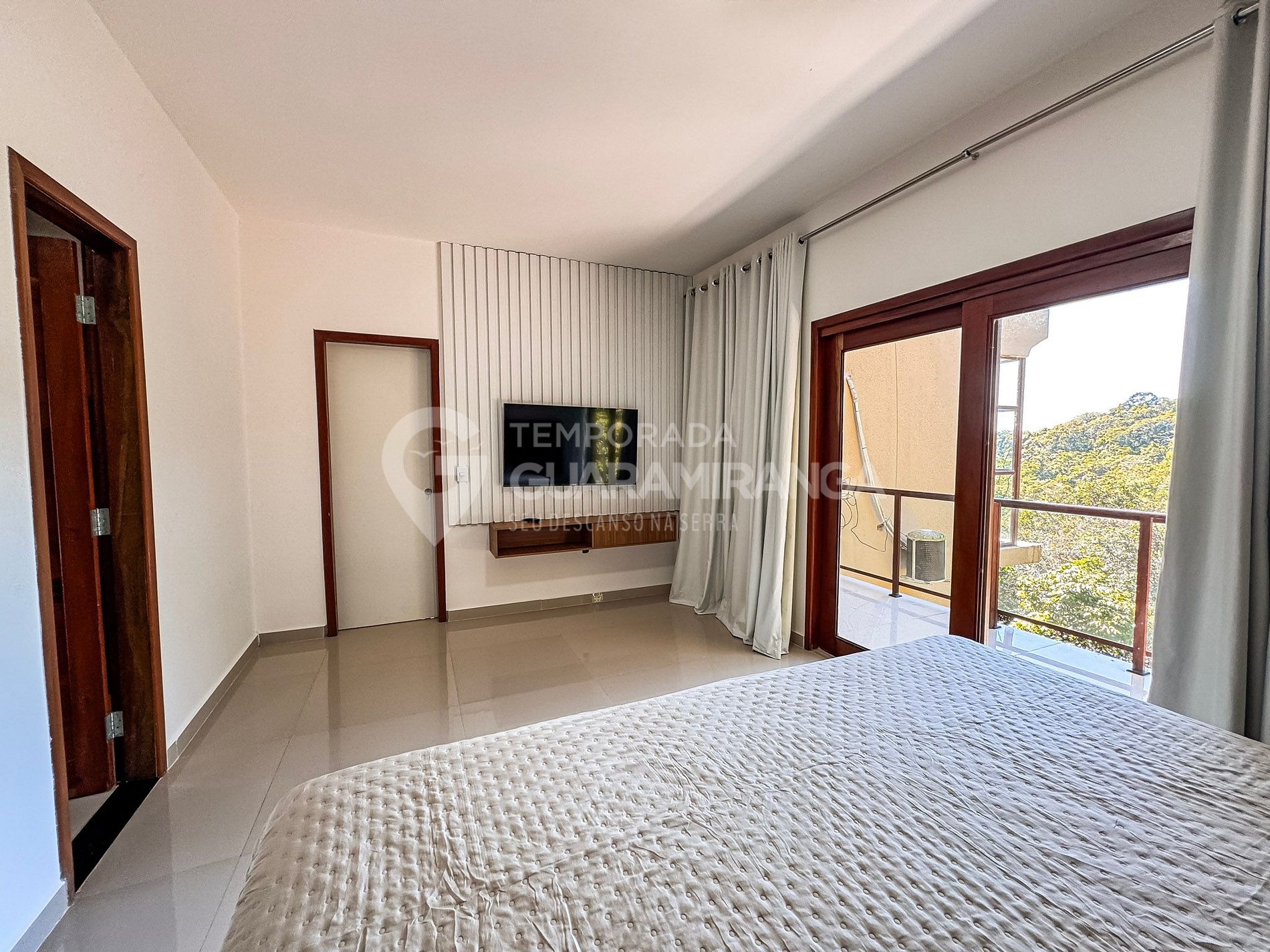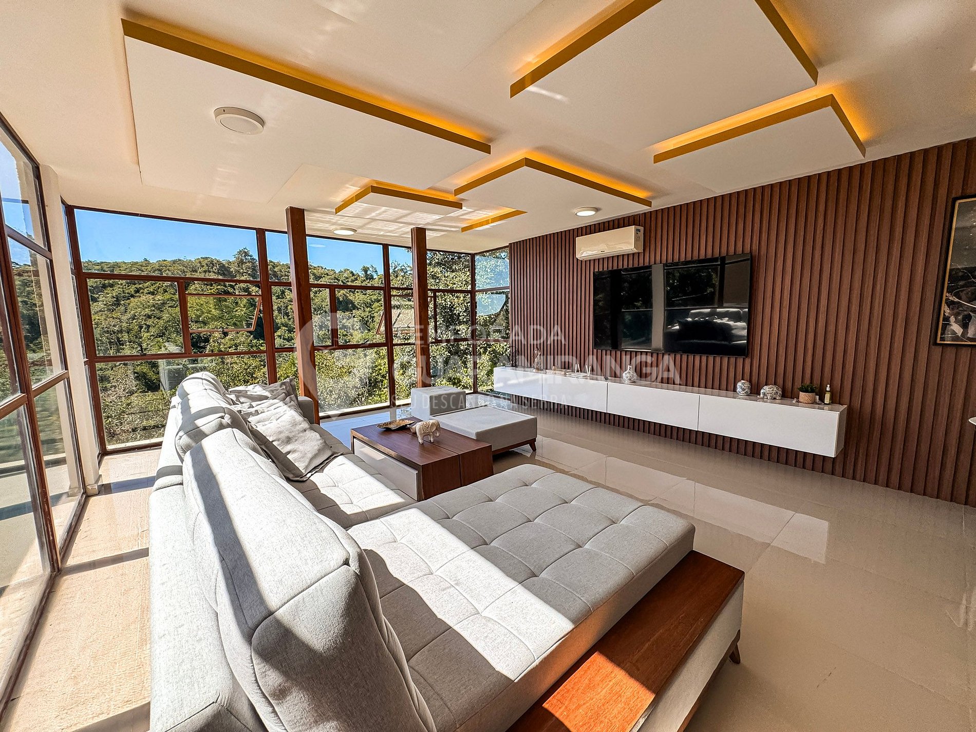 Mansion with 5 air-conditioned suites, heated pool, gourmet area, TV in all rooms, hammock area, playground, and a deck with breathtaking views.