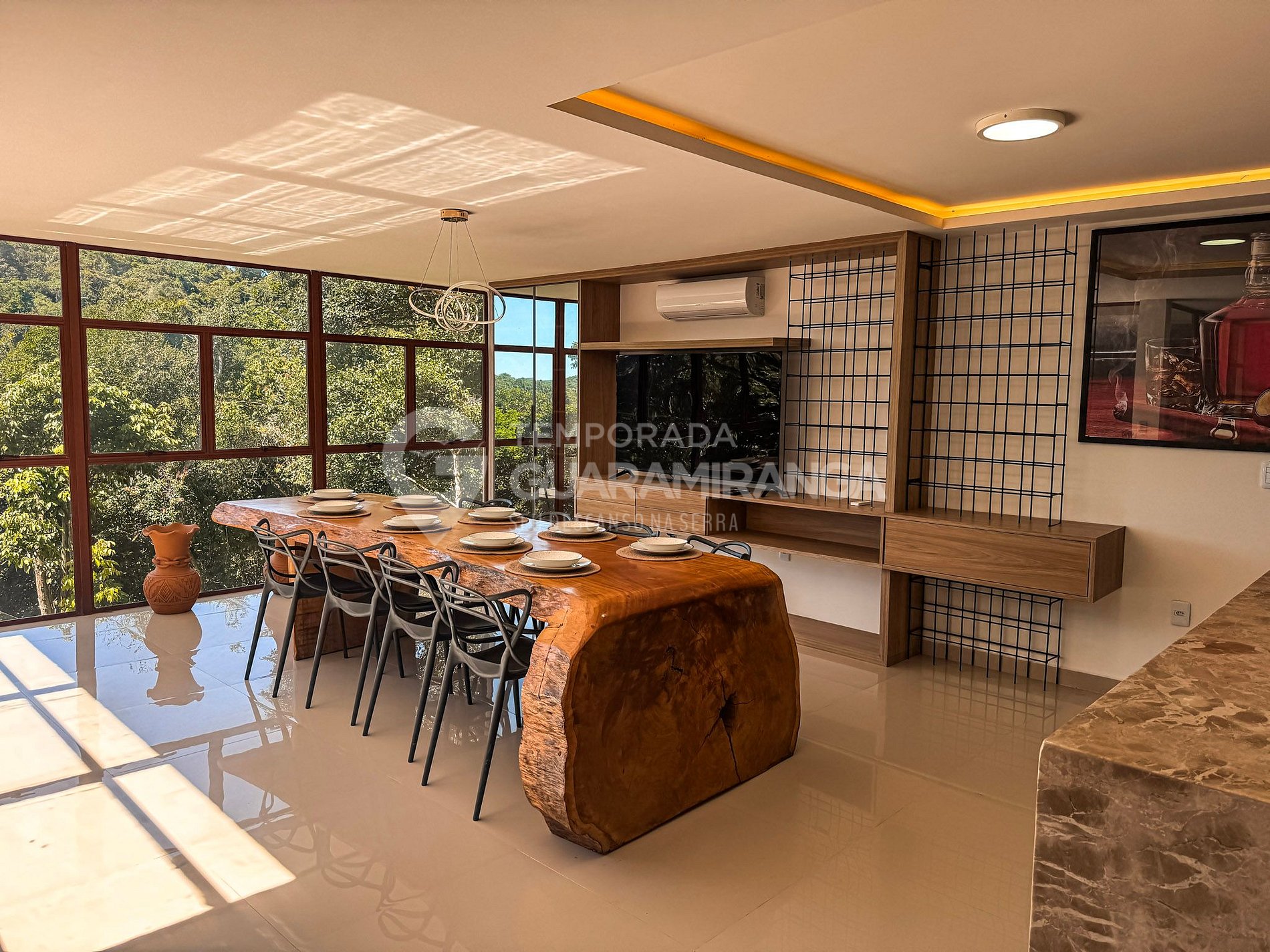 Located just 10 km (15 minutes) from the center of Guaramiranga, it offers 5 spacious, air-conditioned suites, each with a TV, ensuring privacy and well-being for all guests. The living spaces are bright, open, and fully integrated with the surrounding nature.
