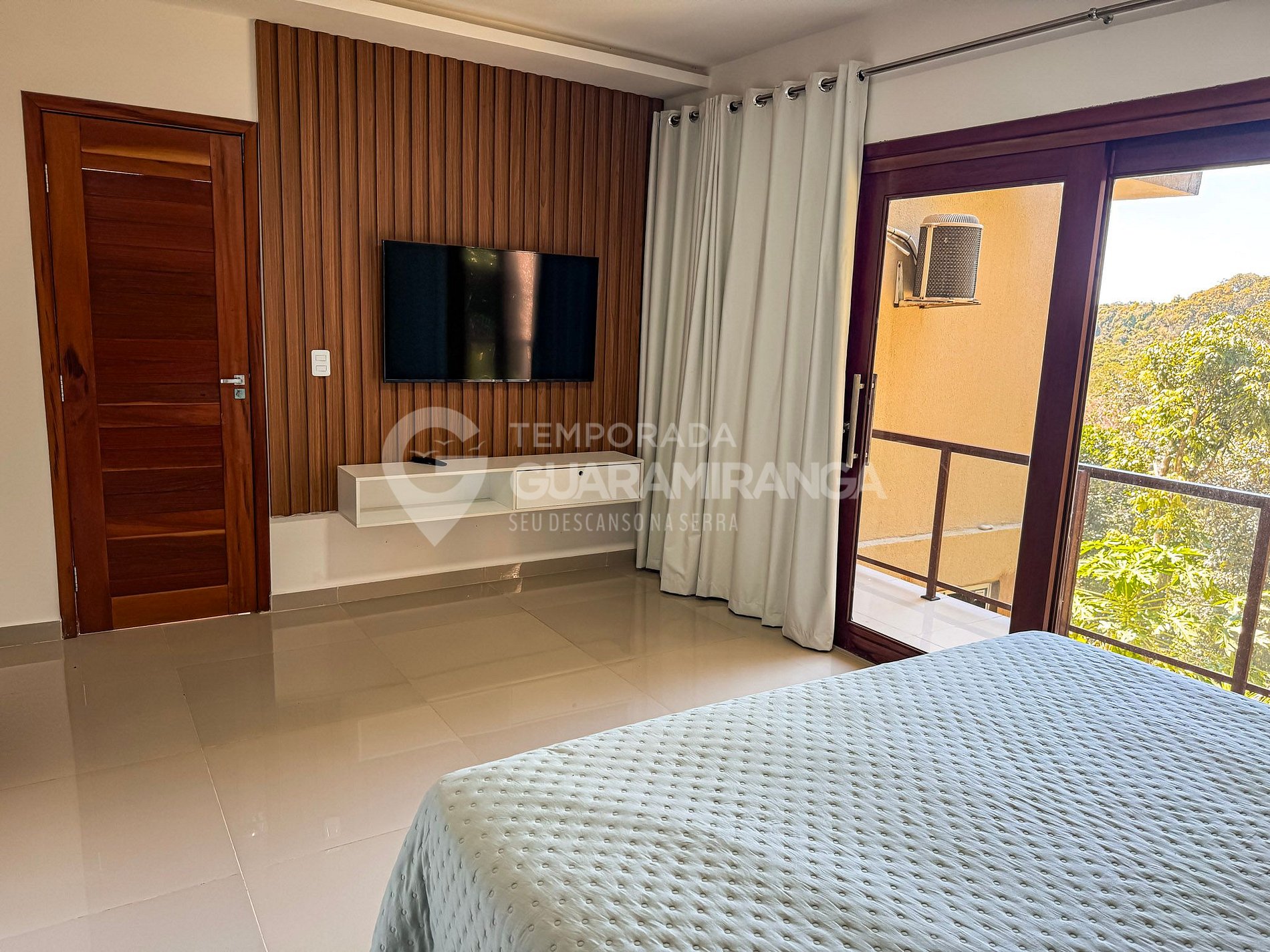Mansion with 5 air-conditioned suites, heated pool, gourmet area, TV in all rooms, hammock area, playground, and a deck with breathtaking views.