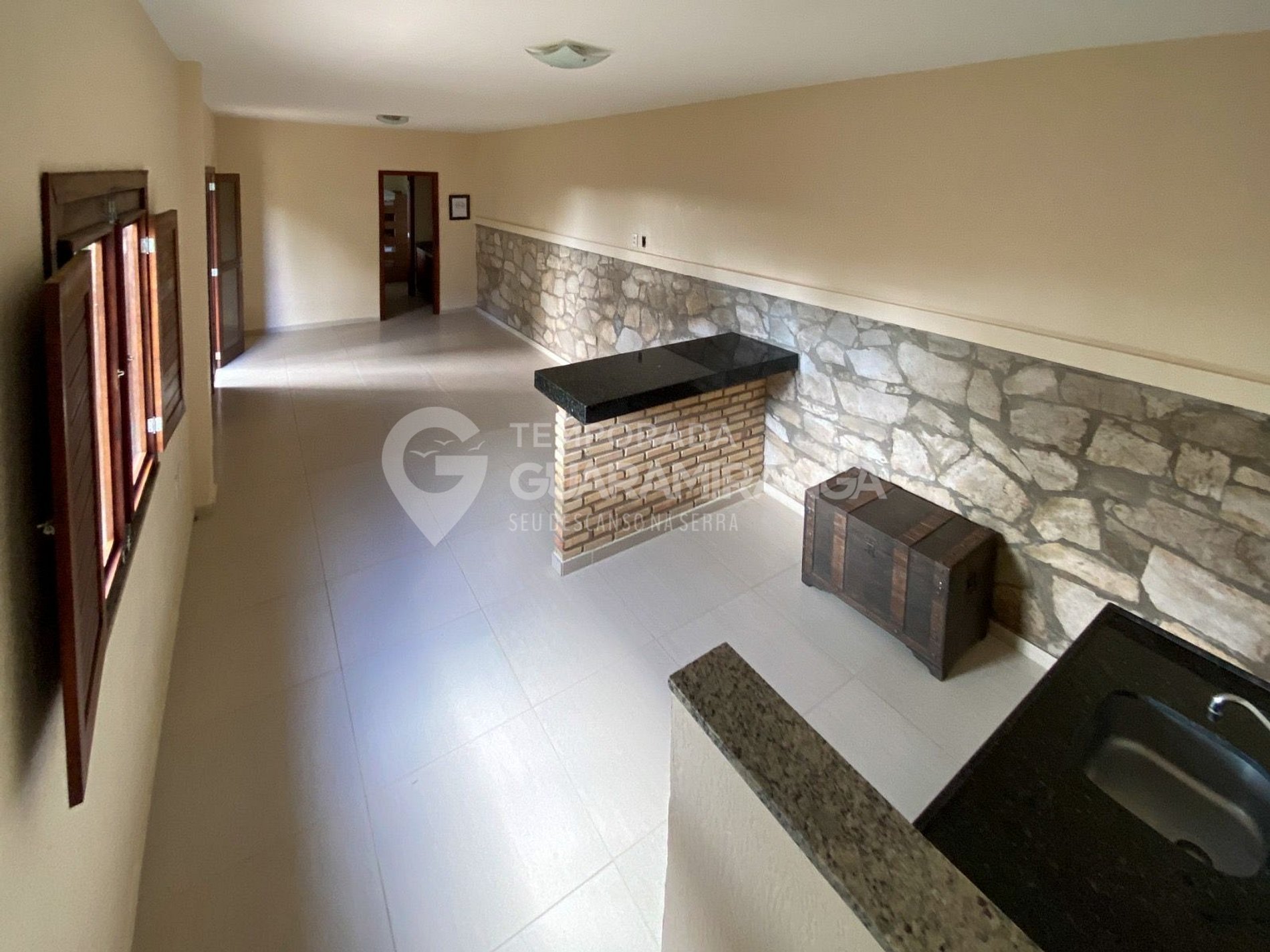 La casa está situada en el condominio Euroville, a aproximadamente 5,9 km del centro de Guaramiranga, con 1,7 km de camino adoquinado.