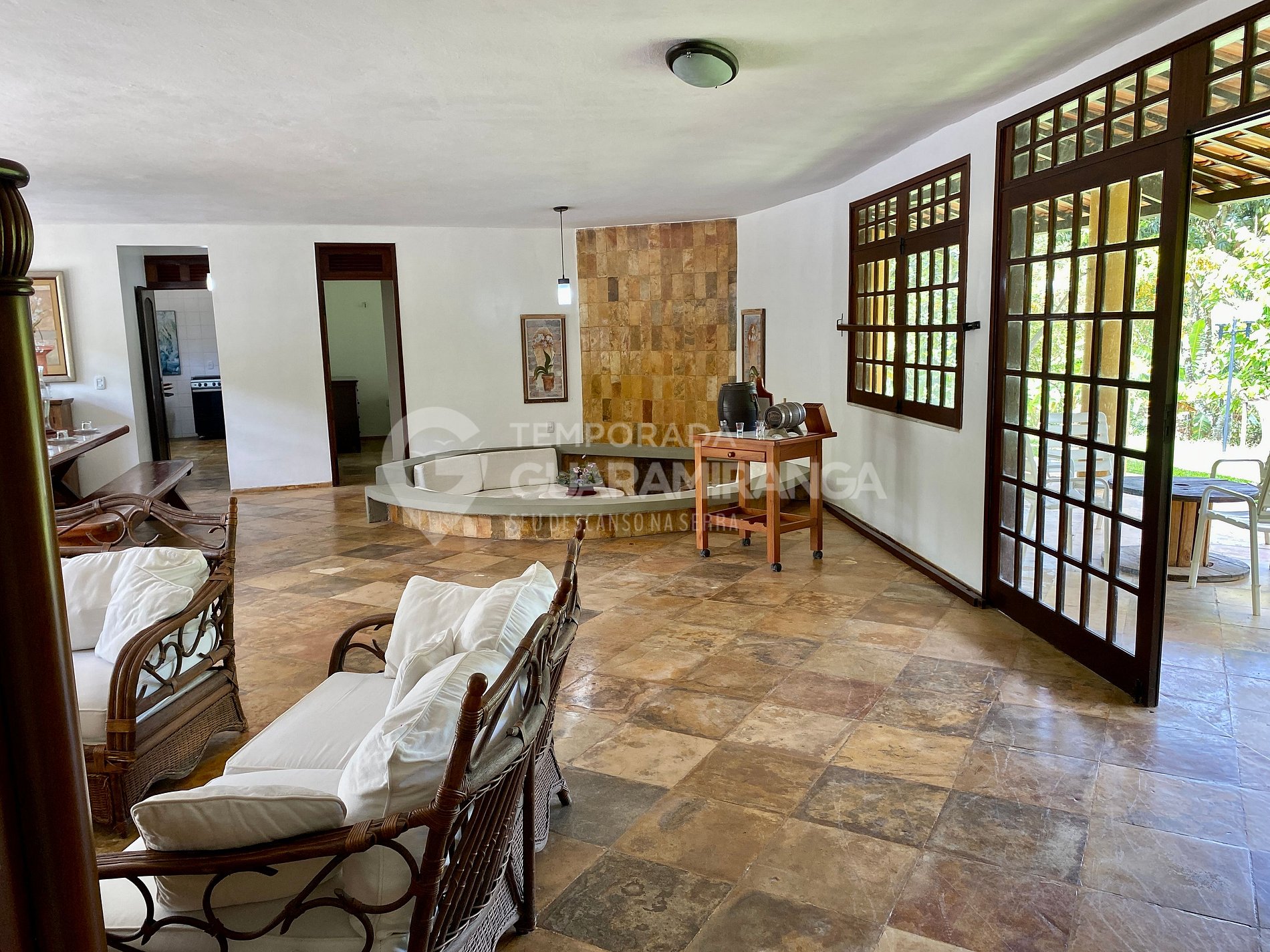 NOTAS GENERALES: • 5 habitaciones, amplia terraza, cocina equipada, comedor y sala de estar. • Área de ocio con piscina y terraza. • Cascada privada con área de apoyo, mesas, bancos y parrilla. • Alojamiento en camas para hasta 12 personas (puede recibir hasta 20 huéspedes con hamacas o colchones adicionales). • Incluye ropa de cama y toallas. • Empleada disponible durante la estadía para ayudar con la limpieza y la alimentación. • Ubicada a 6 km del centro de Guaramiranga. • Acceso por camino de tierra en buen estado. • Soporte disponible durante toda la estadía. • Check-in hasta las 21:00 (tarifa de R$ 100,00 para check-in después de ese horario). • Lea atentamente las REGLAS DE ALOJAMIENTO haciendo clic en “ver todas las reglas” a continuación.