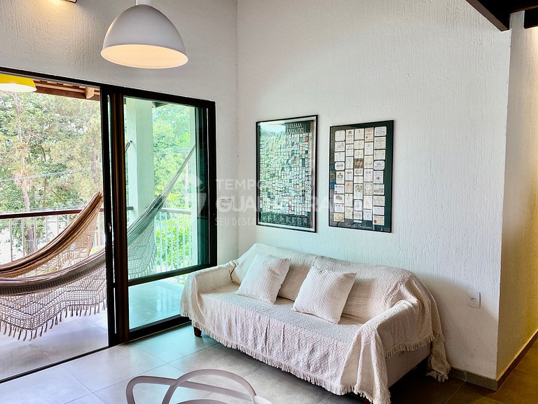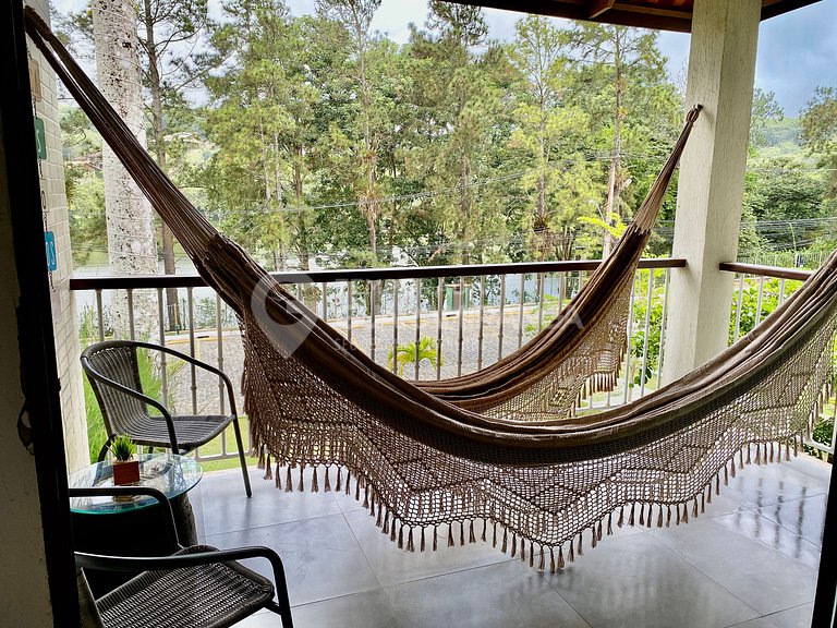 • Ubicado en la zona más exclusiva de Guaramiranga, el apartamento en el Condominio Montserrat ofrece una estadía relajante y cómoda con impresionantes vistas al lago. Decorado con buen gusto y equipado con utensilios de calidad, es ideal para familias o grupos de hasta 8 personas. A solo 900 m del centro de Guaramiranga, el espacio es perfecto para momentos de tranquilidad en la sierra, con la opción de colgar hamacas en el balcón para disfrutar del paisaje.
