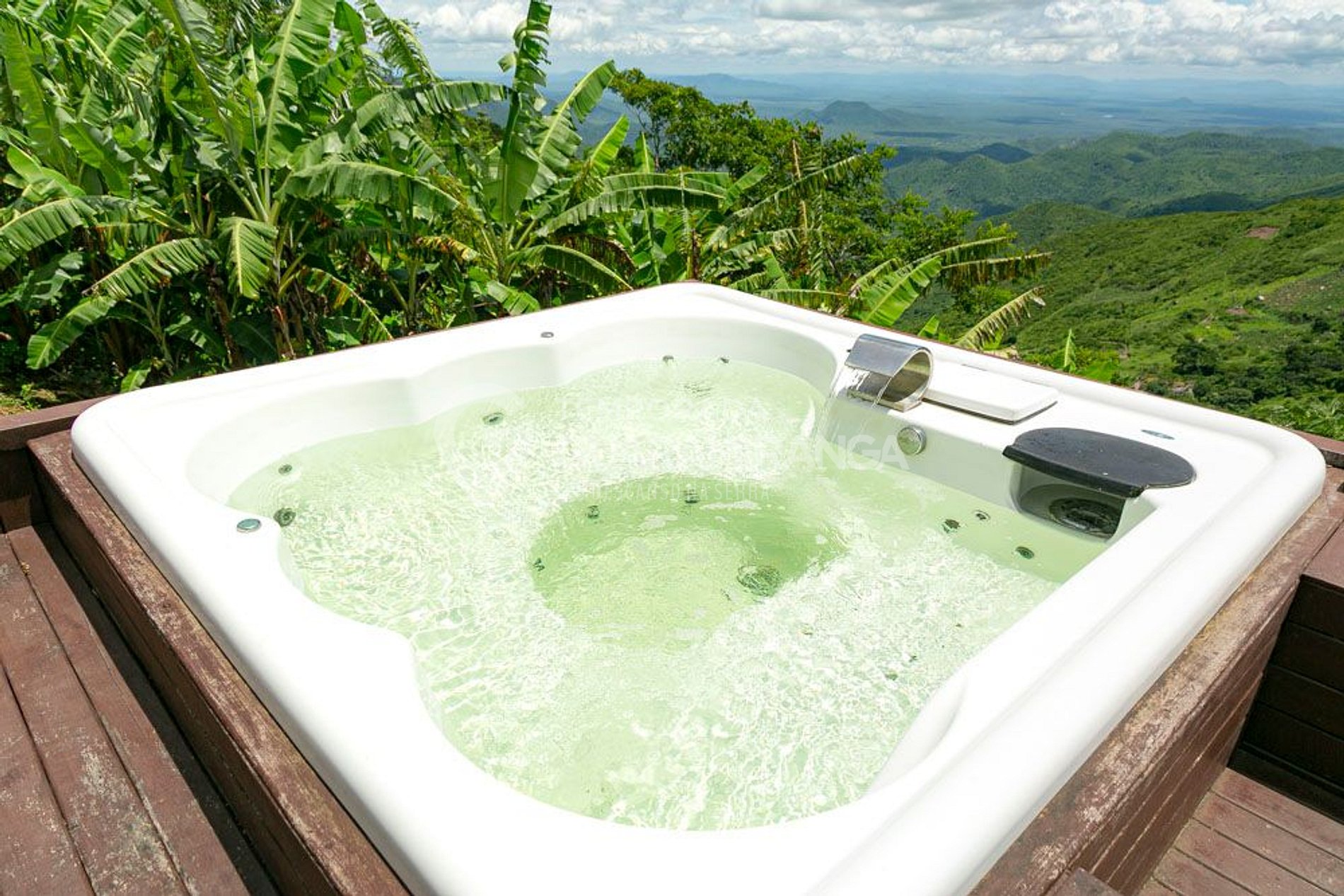 • Área gourmet con jacuzzi y vistas panorámicas a la montaña, deck completo con parrilla y gran mesa para comidas en grupo.