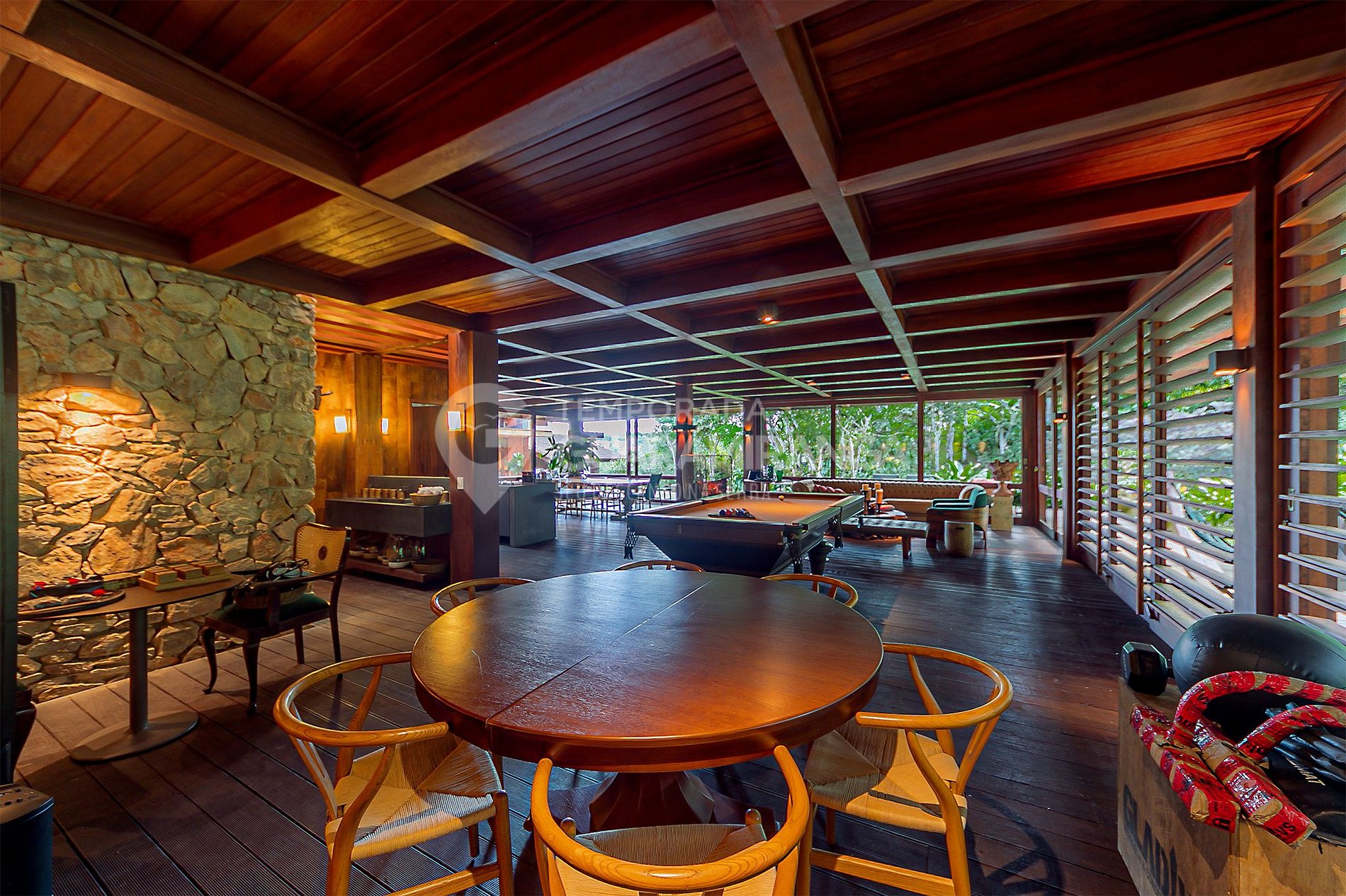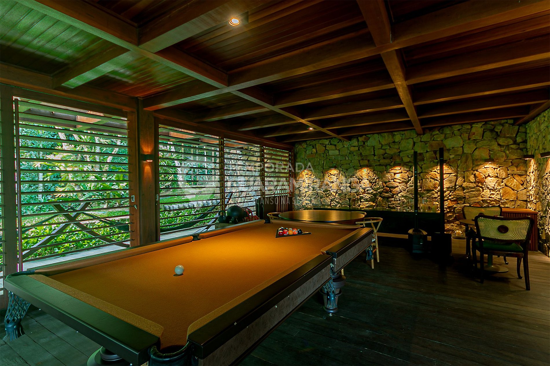 Conta ainda com restaurante privativo, capela, heliponto e áreas de preservação permanente, proporcionando aos hóspedes uma estadia completa e confortável.