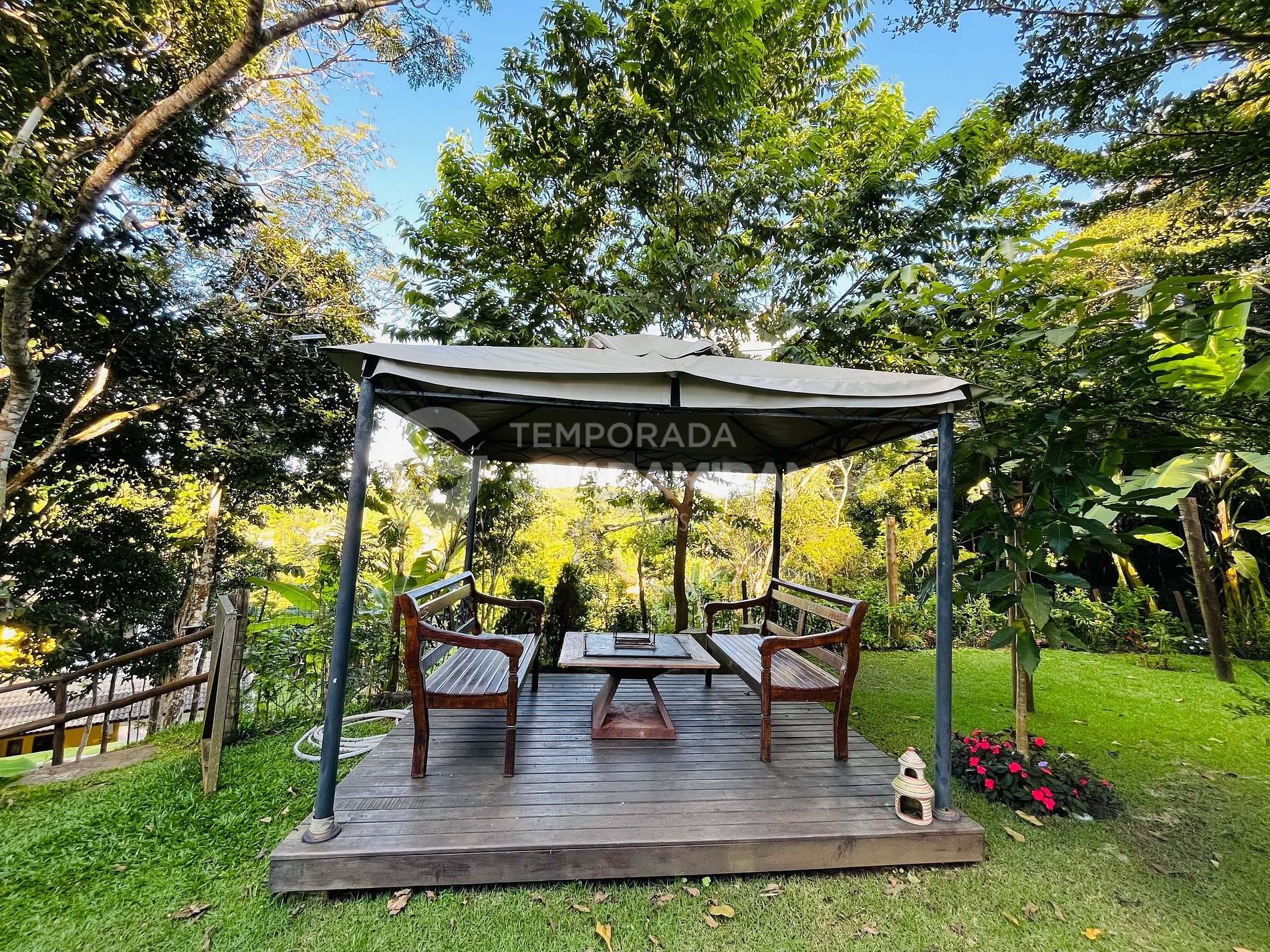 • 4 suítes, sala de TV, sala de jantar, cozinha americana e jardim.
