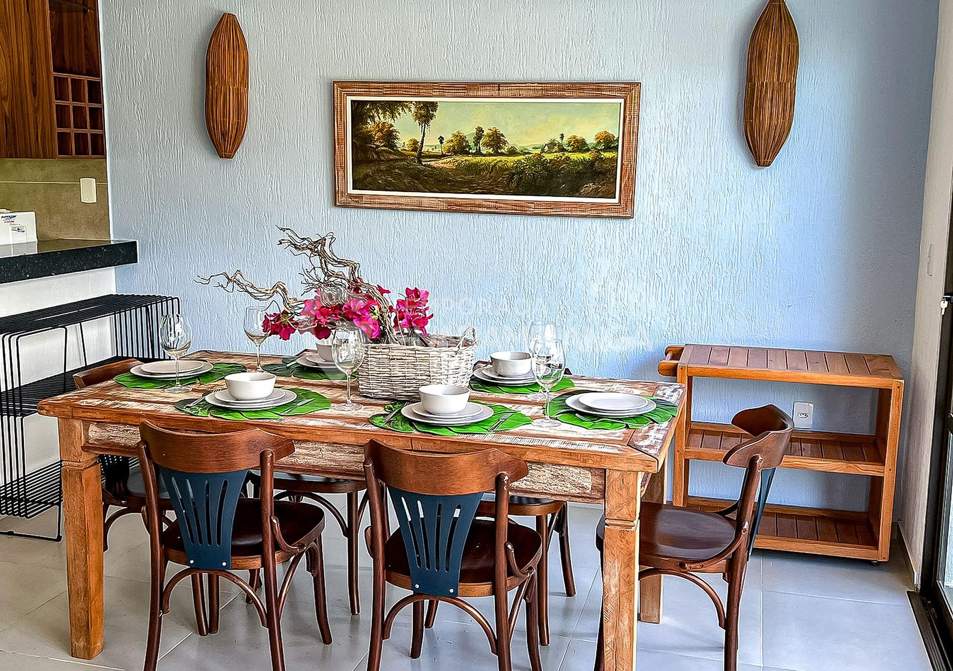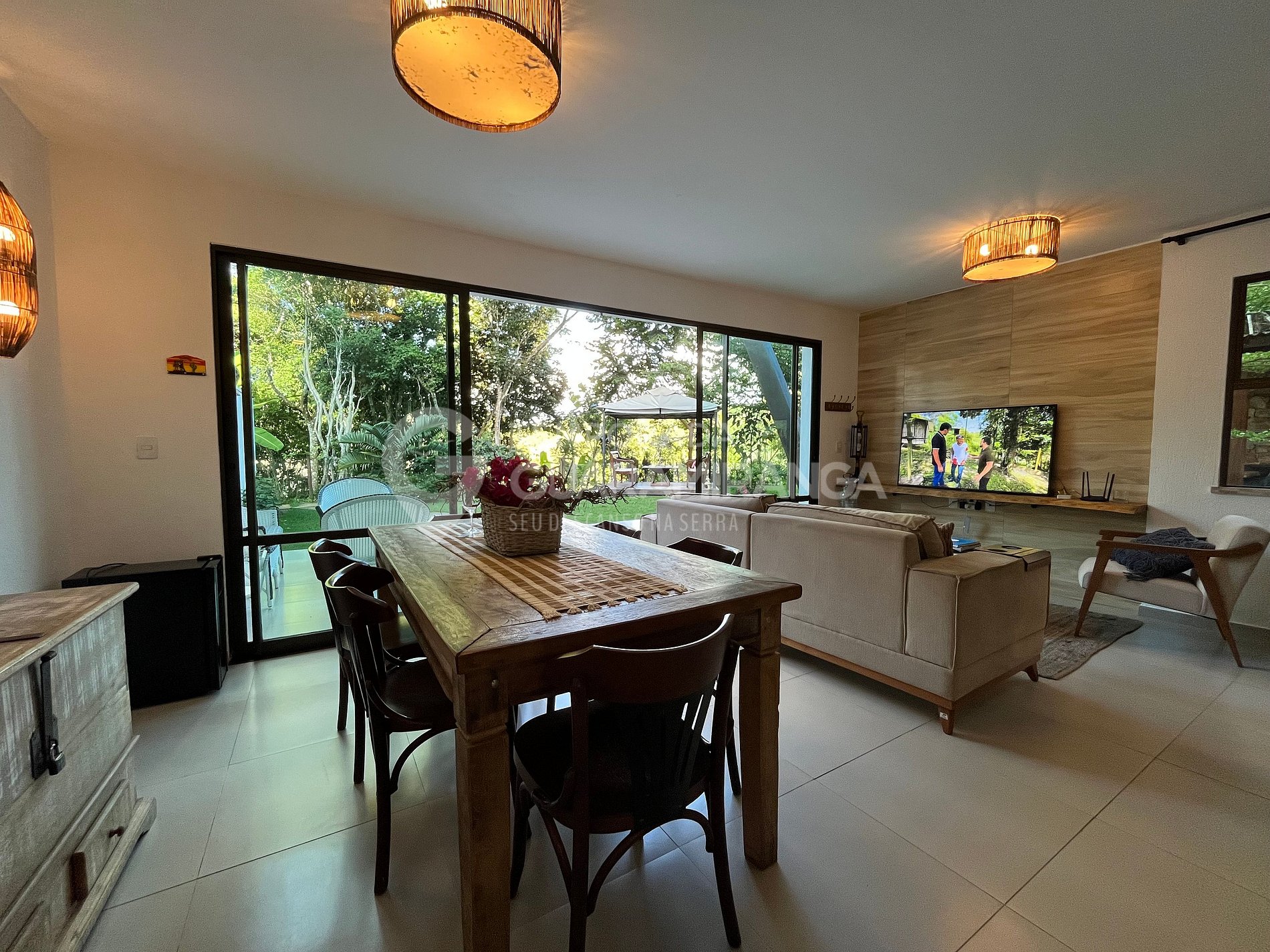 • 4 suítes, sala de TV, sala de jantar, cozinha americana e jardim.