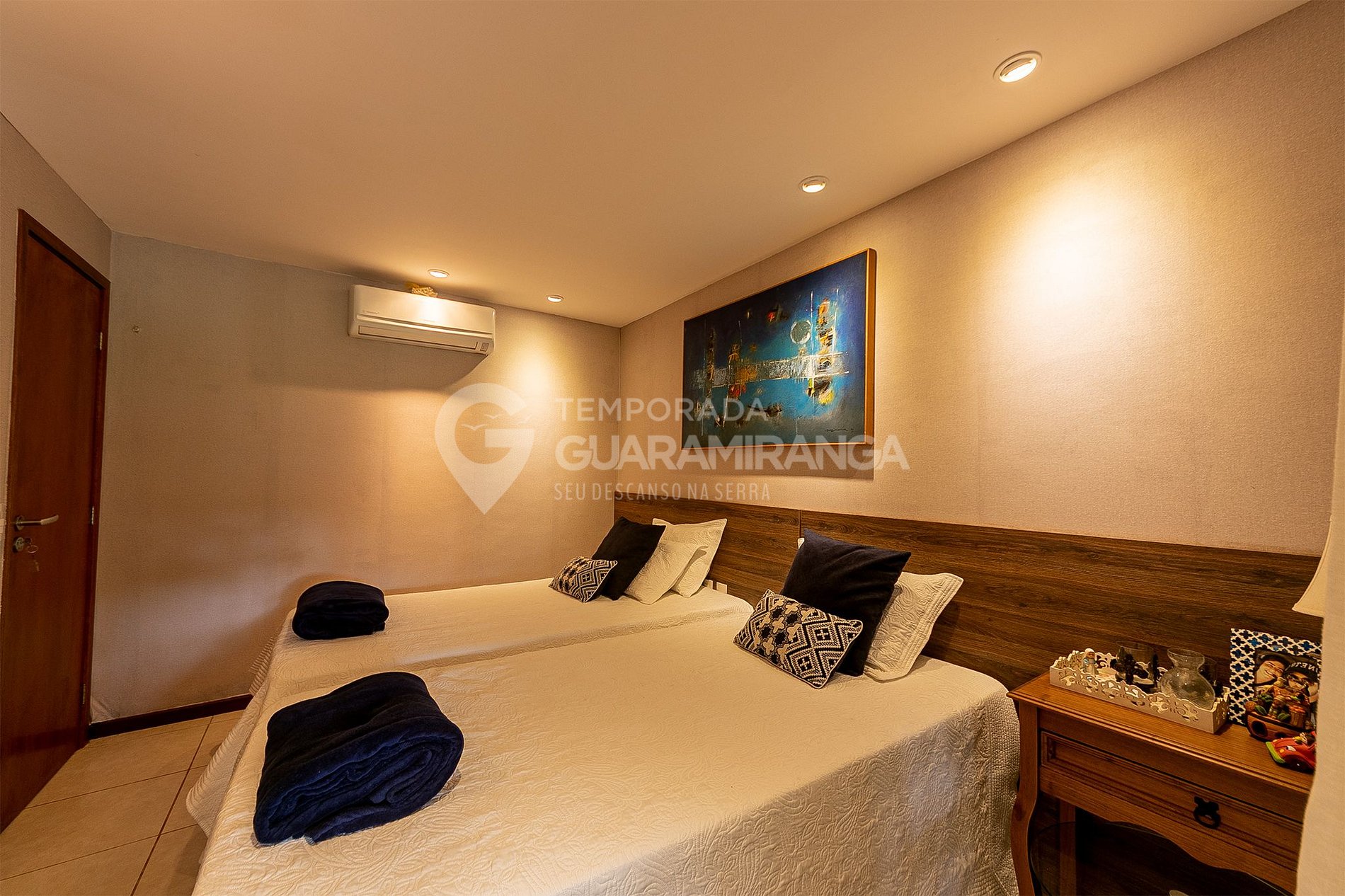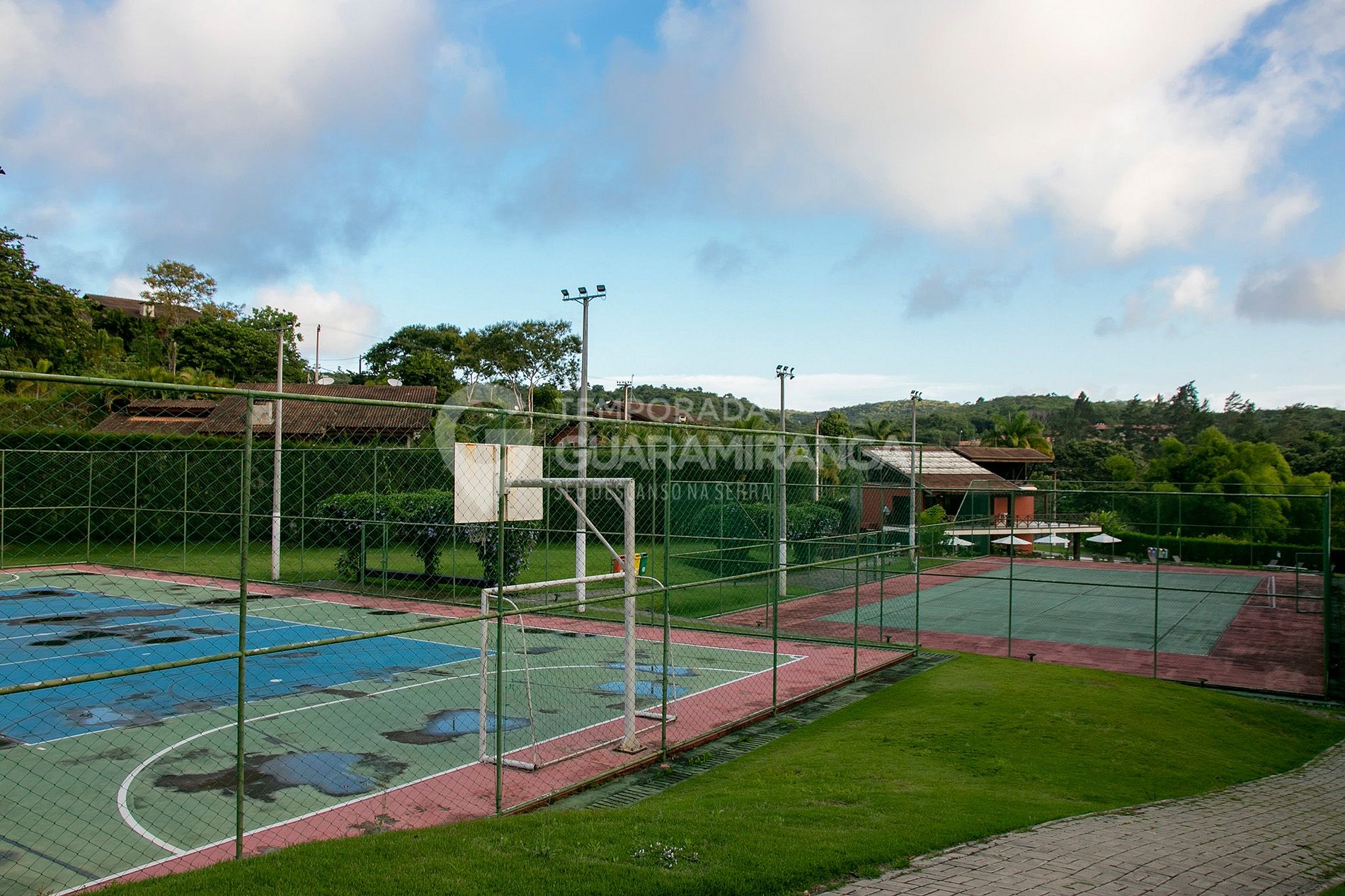 O condomínio possui três portarias 24 horas e segurança, garantindo tranquilidade durante toda a estadia.