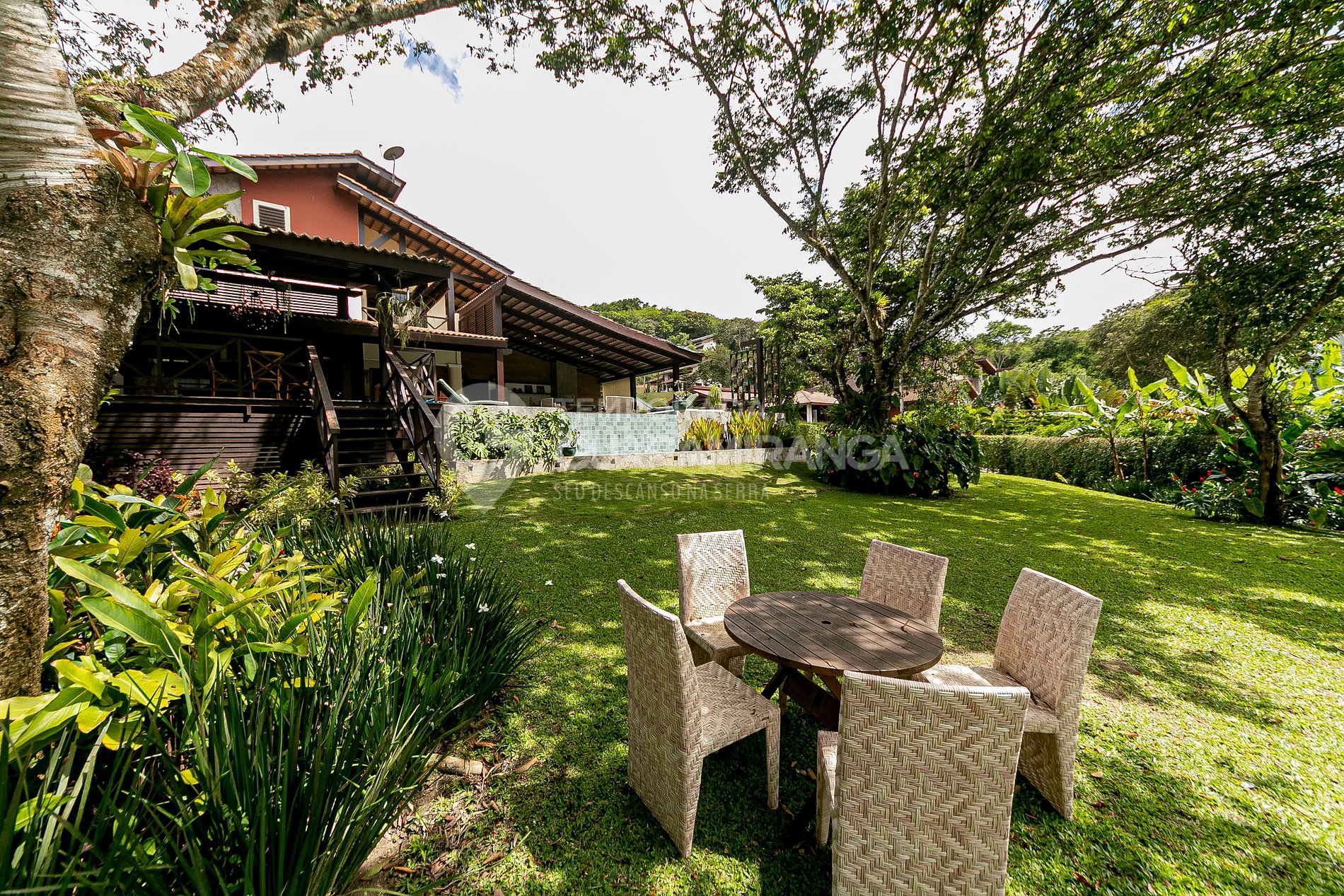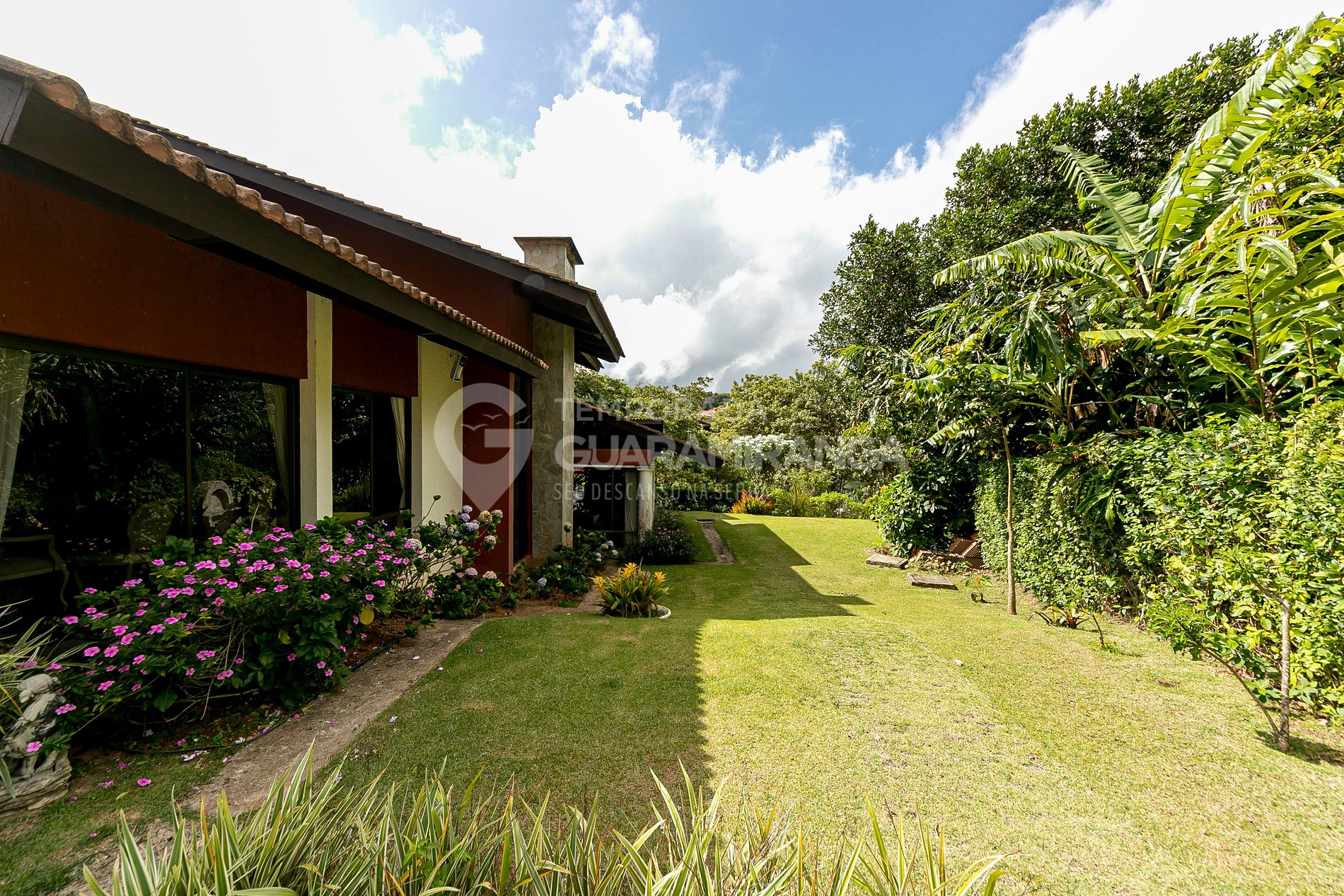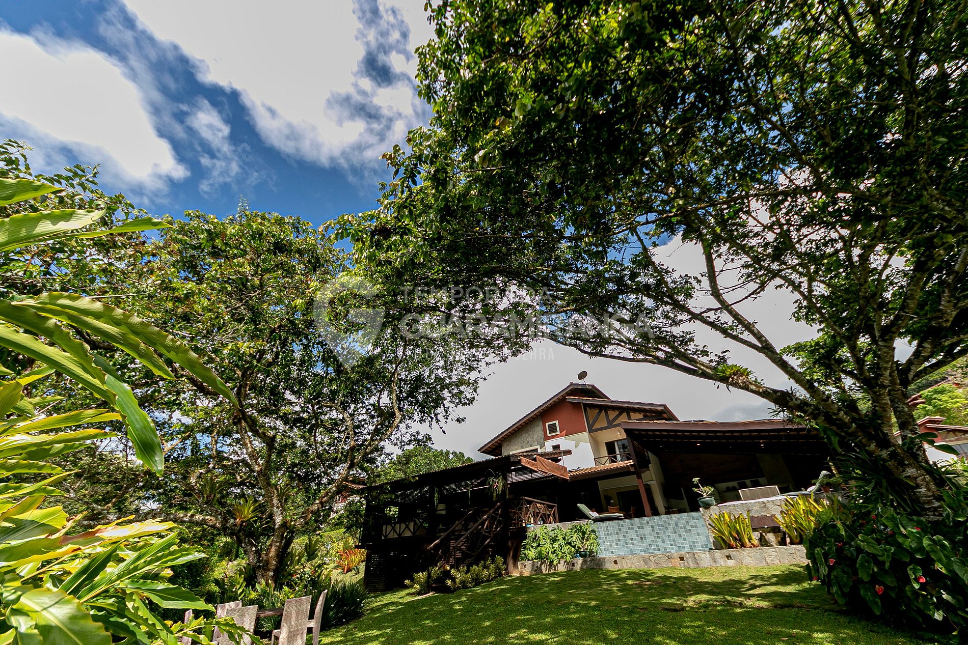Essa mansão é toda decorada e projetada, possui utensílios e louças de alta qualidade, um lindo jardim e uma grande área externa. Também possui funcionários treinados para melhor atender aos hóspedes.