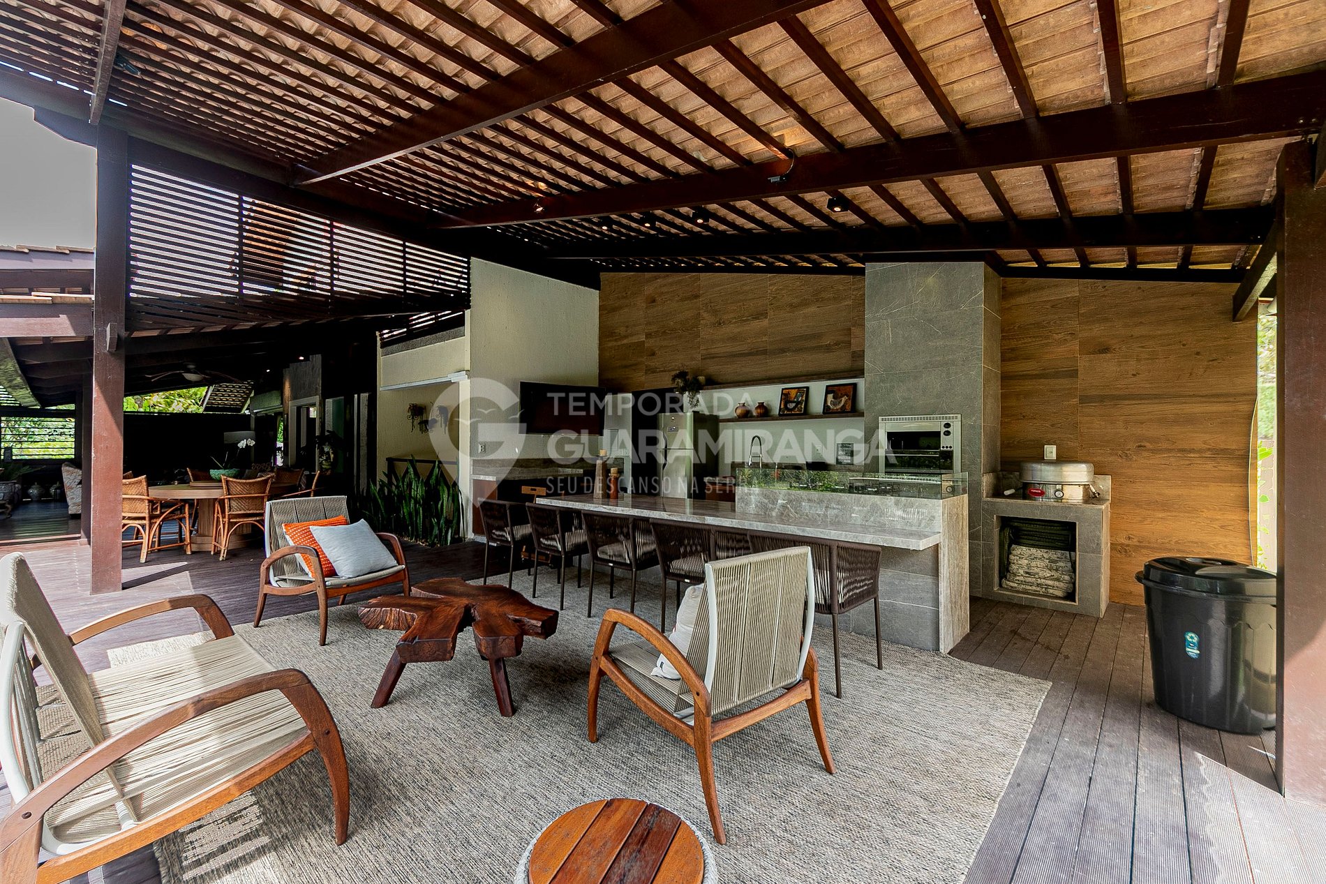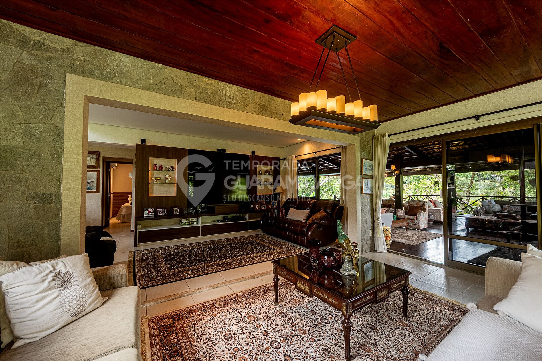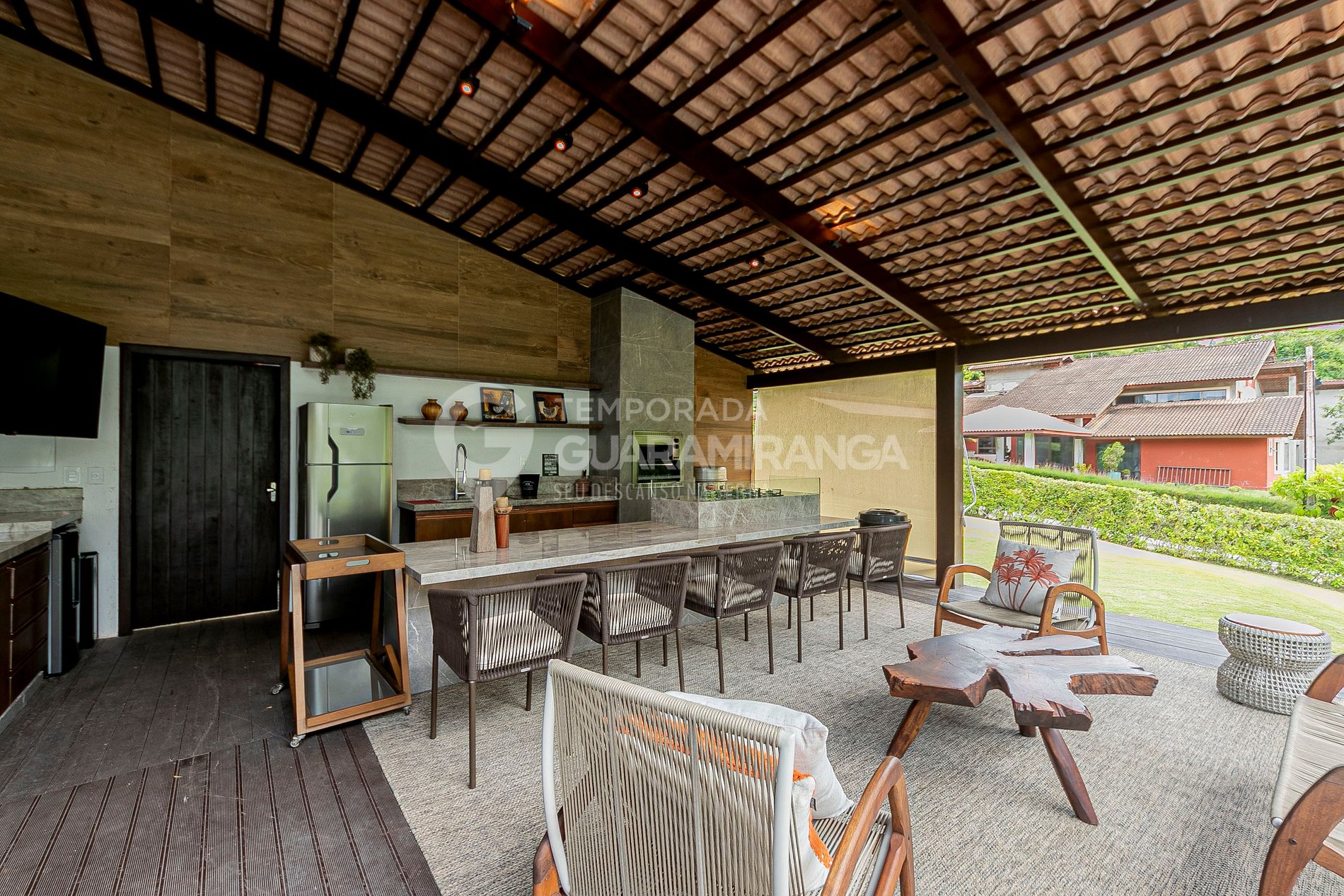 Essa mansão é toda decorada e projetada, possui utensílios e louças de alta qualidade, um lindo jardim e uma grande área externa. Também possui funcionários treinados para melhor atender aos hóspedes.