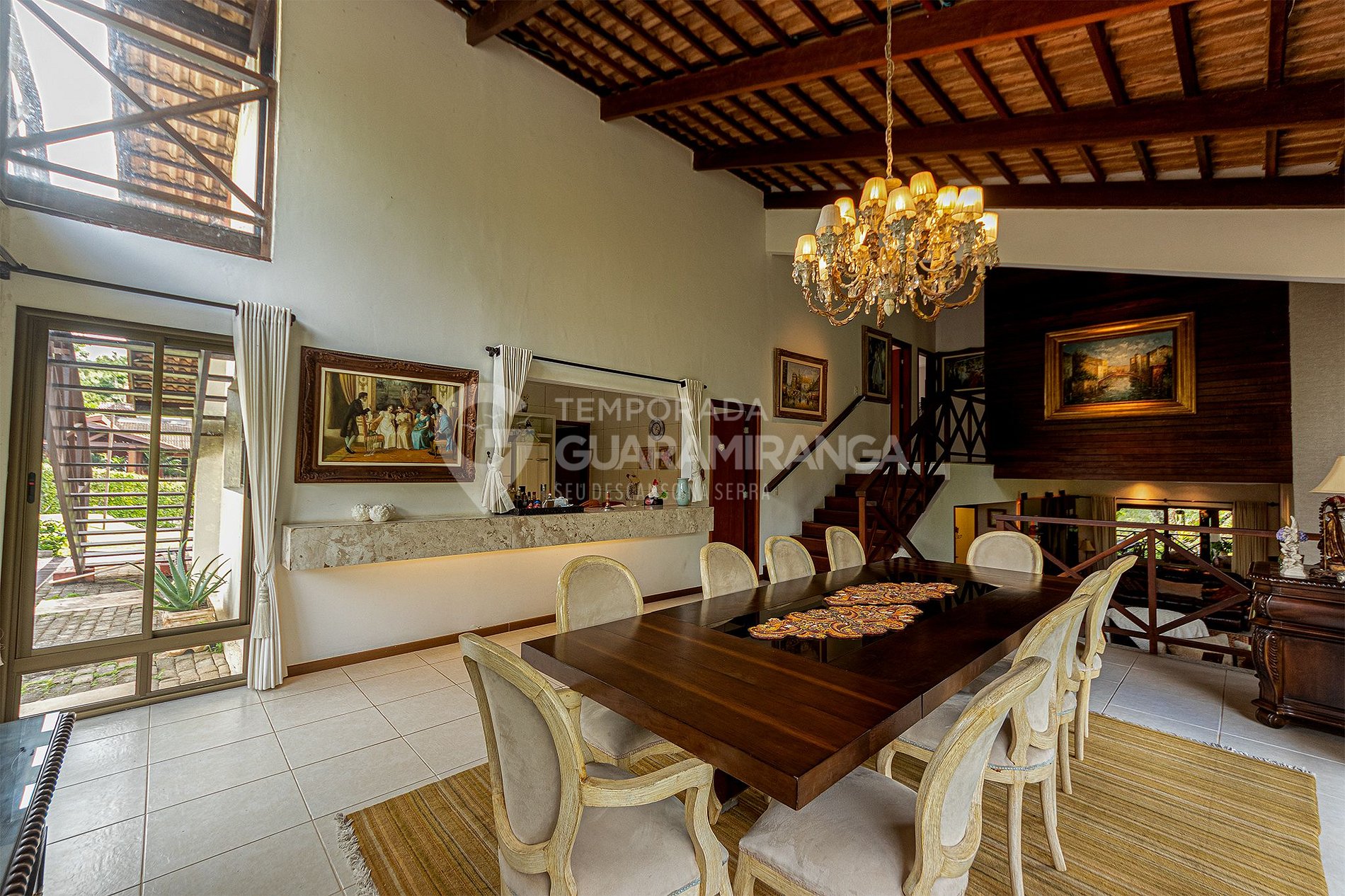 Possui uma grande sala de estar e sala de jantar, além de vários ambientes para você e sua família desfrutar de momentos incríveis.