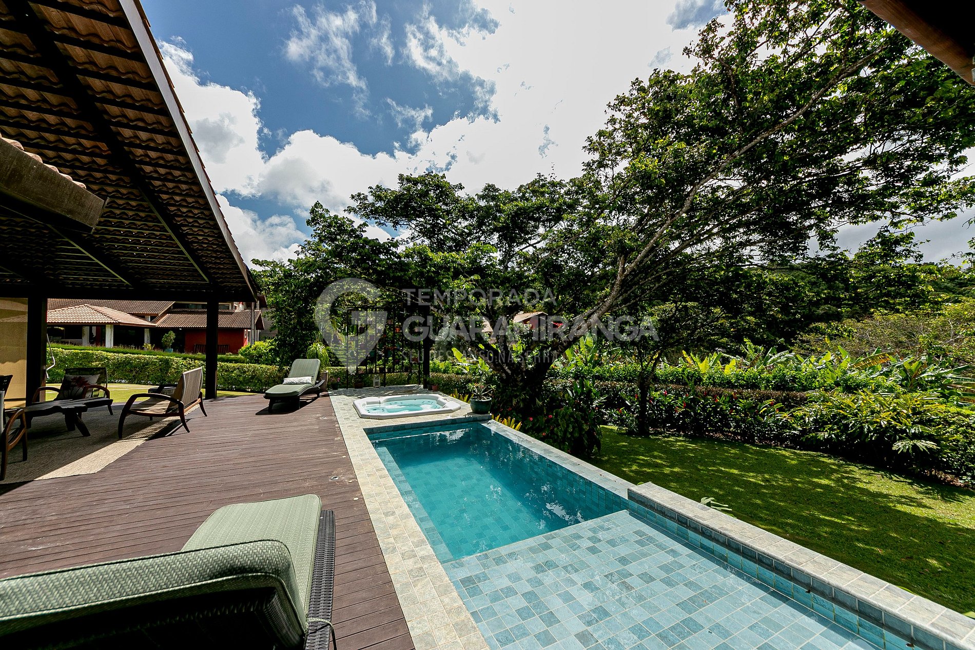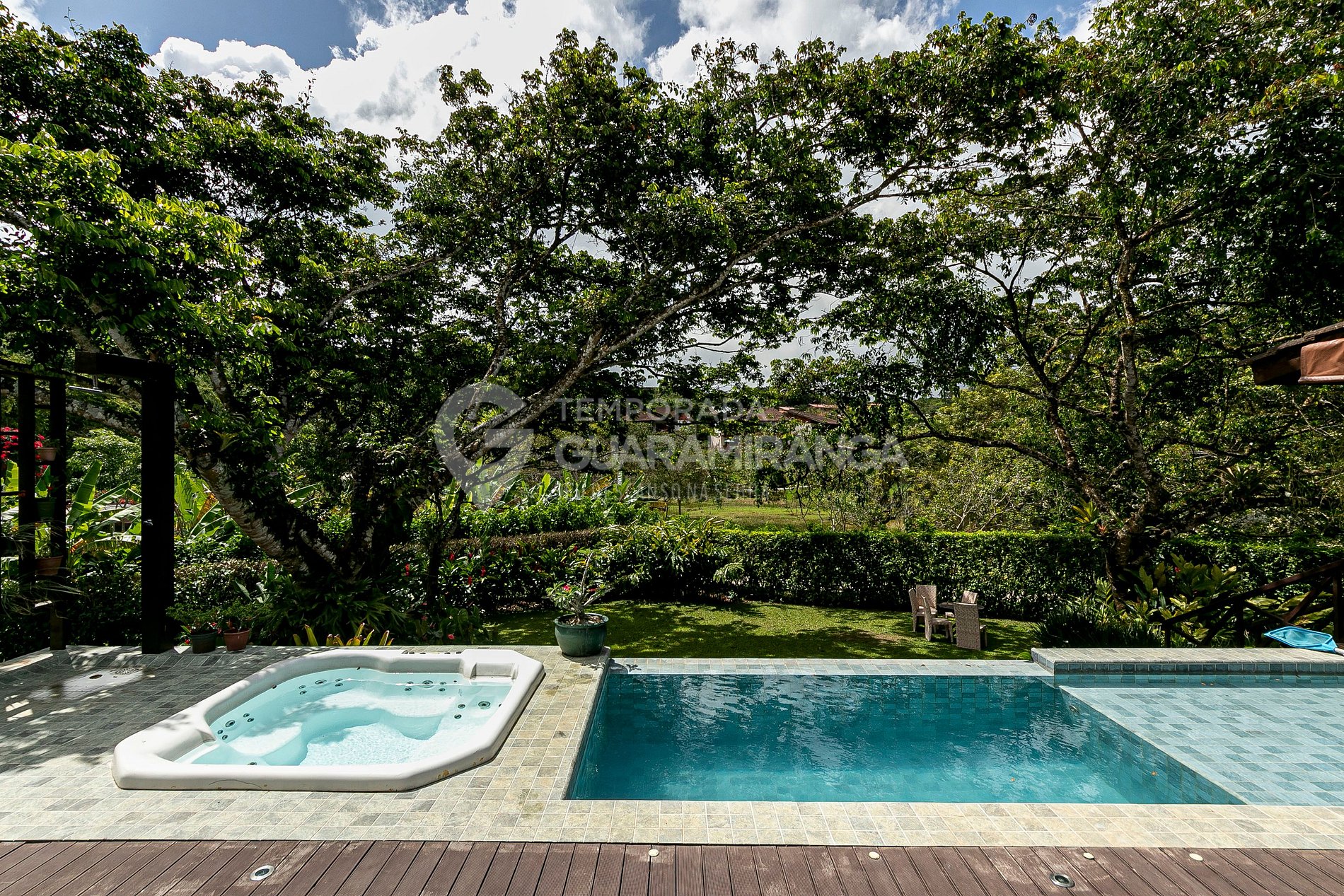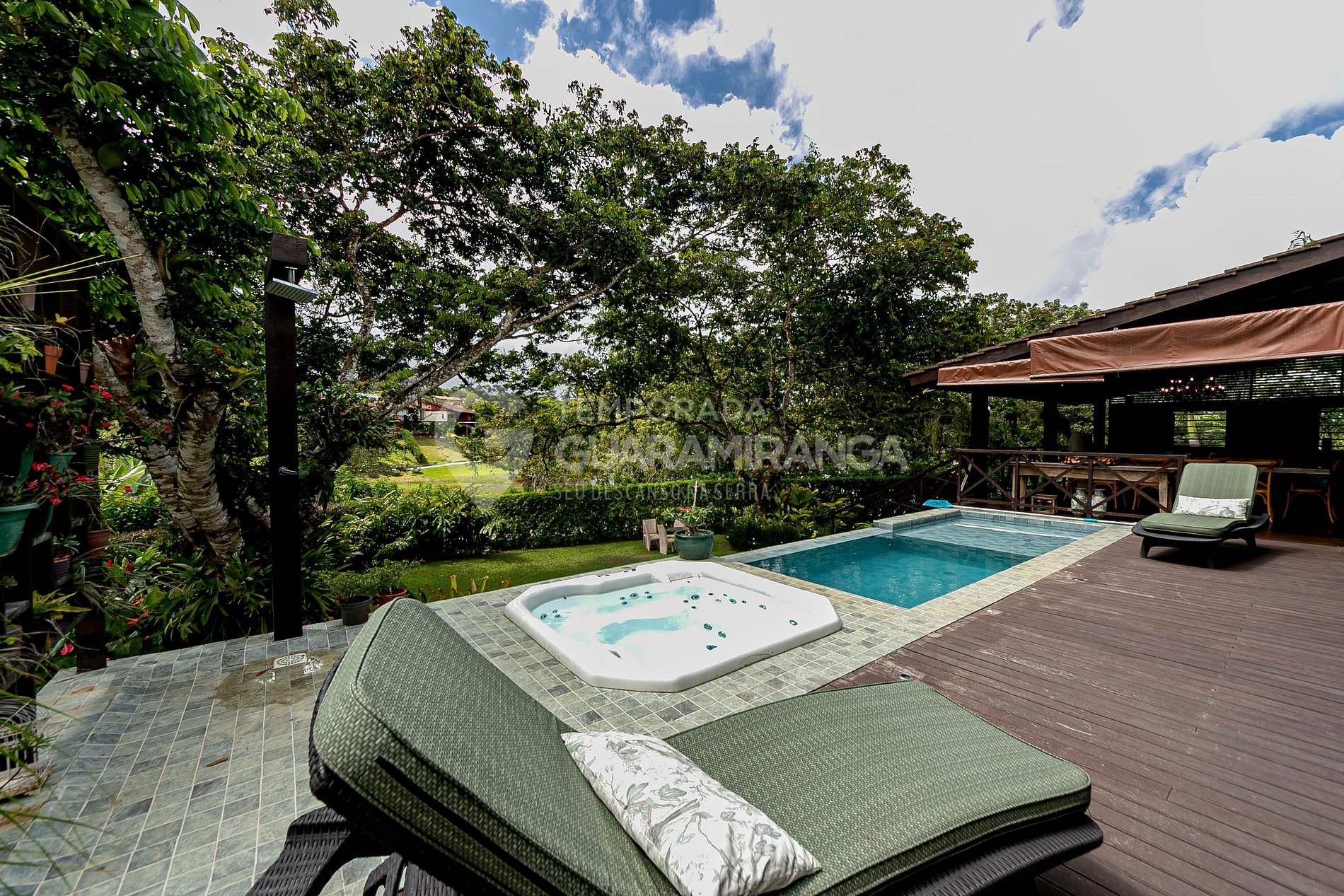 Tem um lindo deck privativo com churrasqueia, sauna, hidromassagem, piscina além de estar no melhor condomínio de Guaramiranga, onde você terá acesso à área de lazer com piscina aquecida, academia, sauna, restaurante e uma pista de caminhada ao redor do lago.