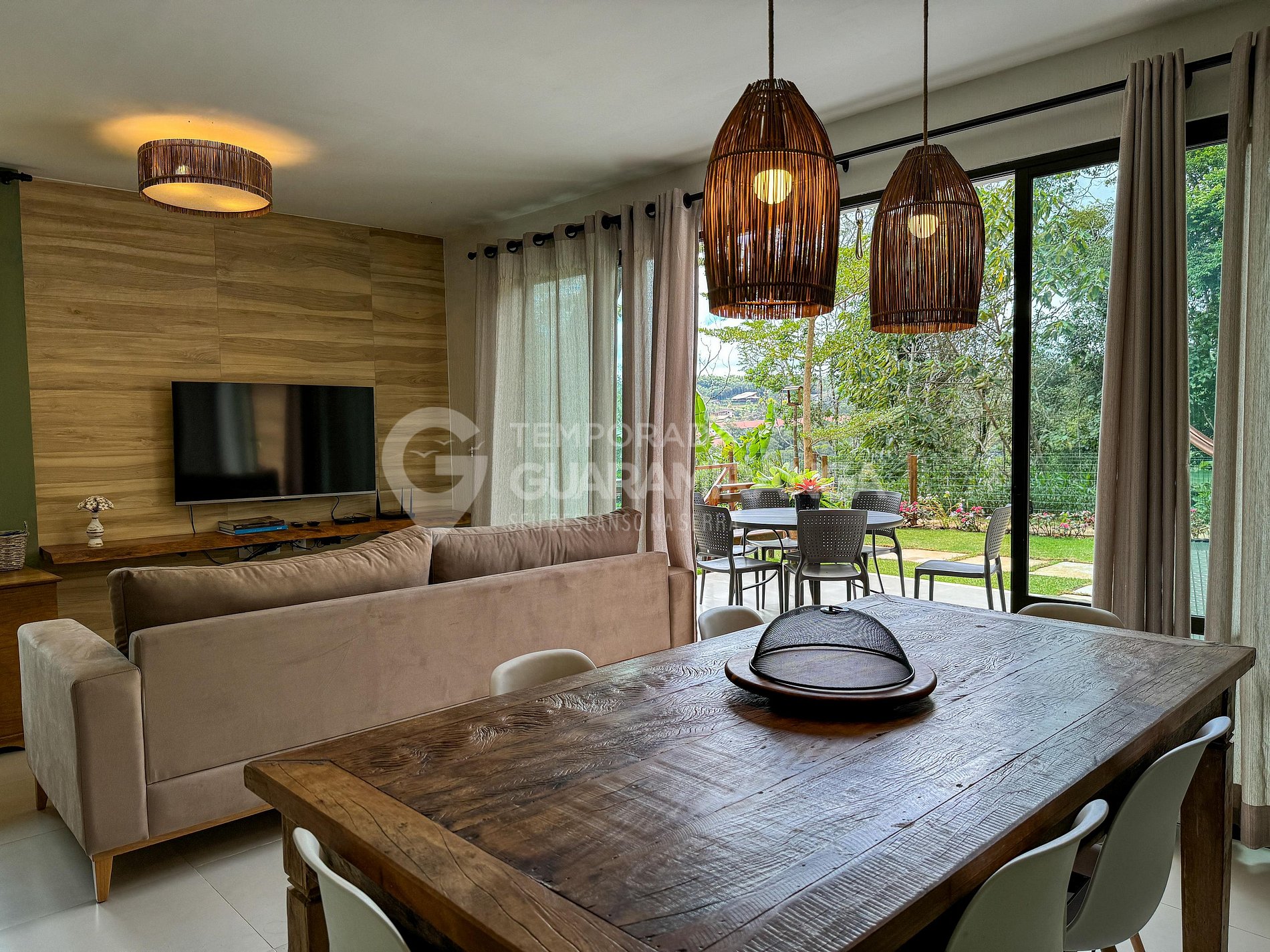 • 4 suítes, sala de TV, sala de jantar, cozinha americana e jardim.
