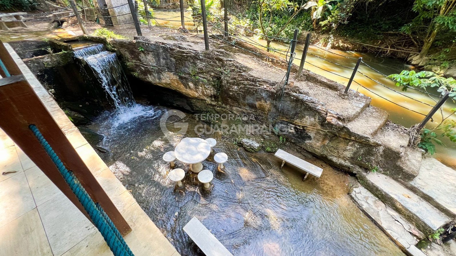 • Cachoeira privativa com espaço de apoio, mesas, bancos e churrasqueira.