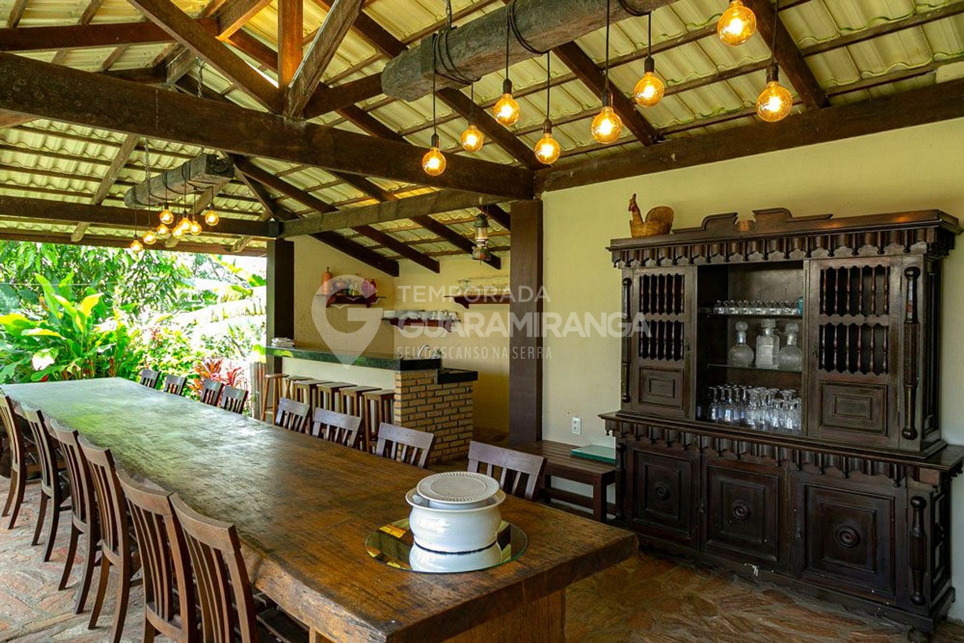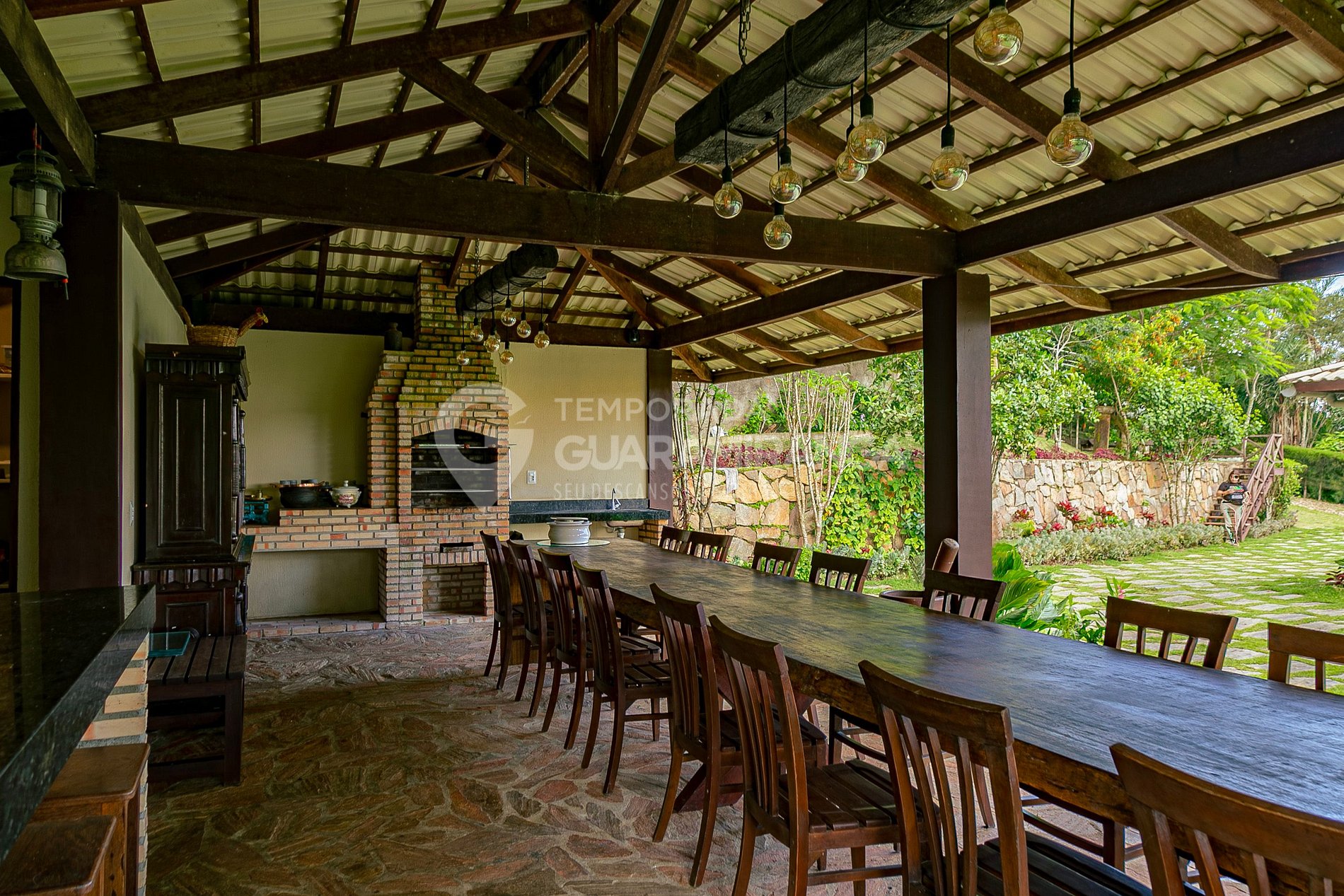 • Área Gourmet com jacuzzi com vista panorâmica para as montanhas, deck completo com churrasqueira e uma grande mesa para refeições em grupo.
